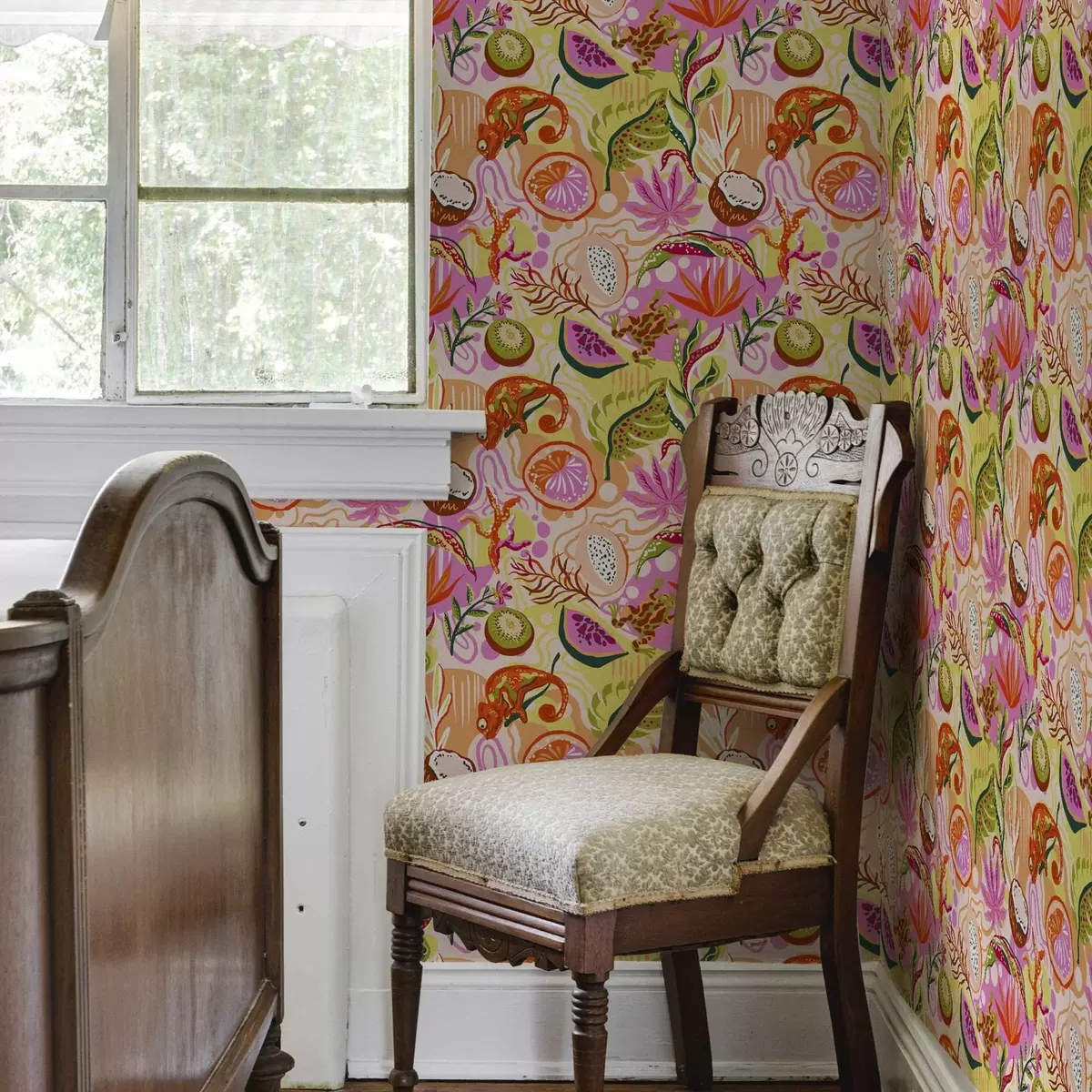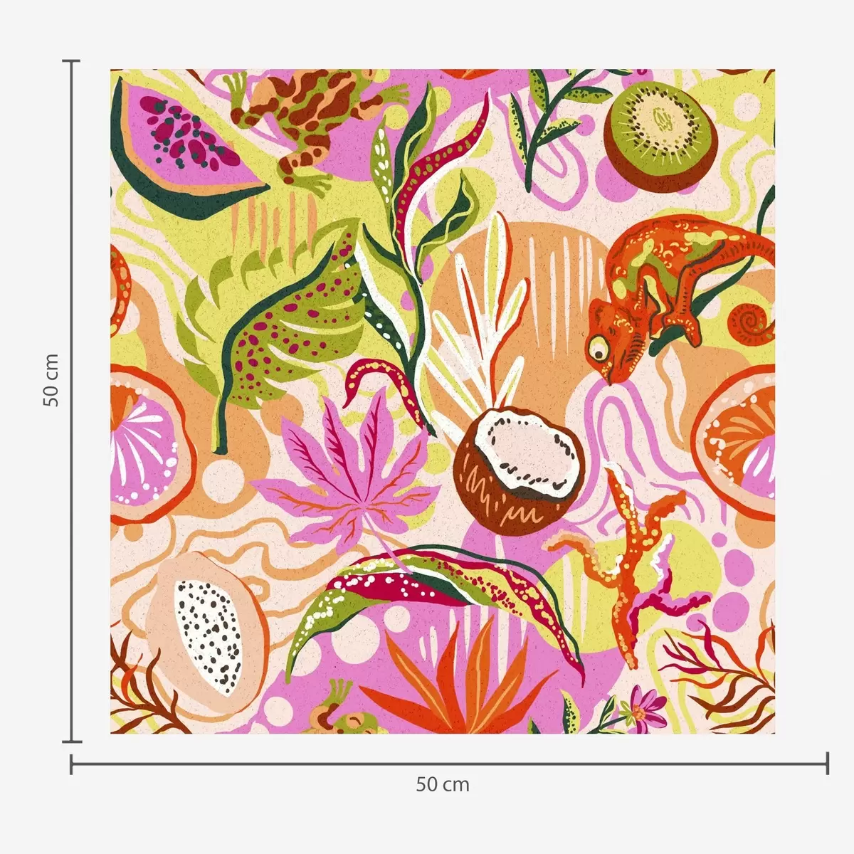 Papel de parede Frutos exóticos, folhas e camaleões num estilo tropical Nr. a00469