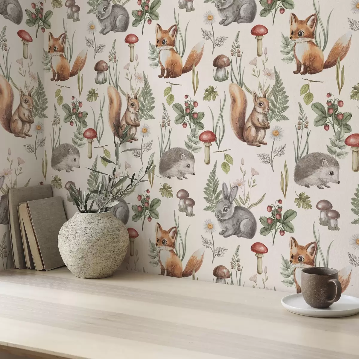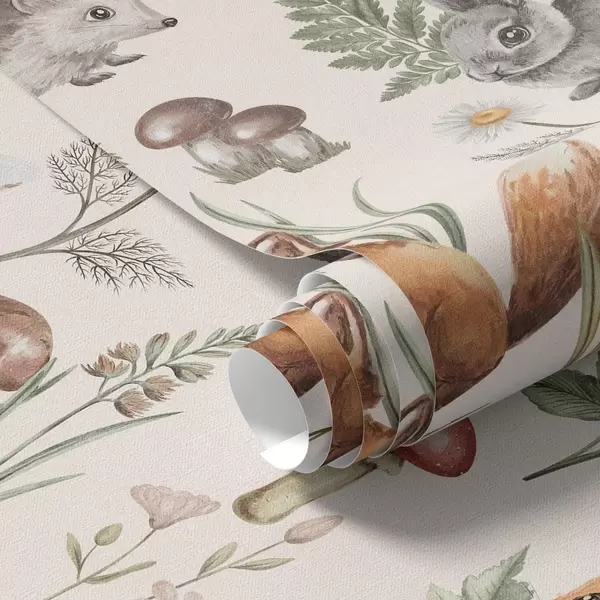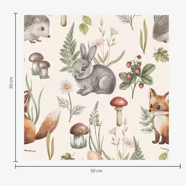 Papel de parede Animais da floresta, cogumelos e plantas num estilo de conto de fadas Nr. a00477