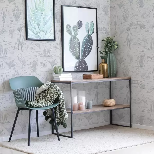 Papel de parede Desenho de garças e plantas aquáticas em tons de cinzento calmos Nr. a00479