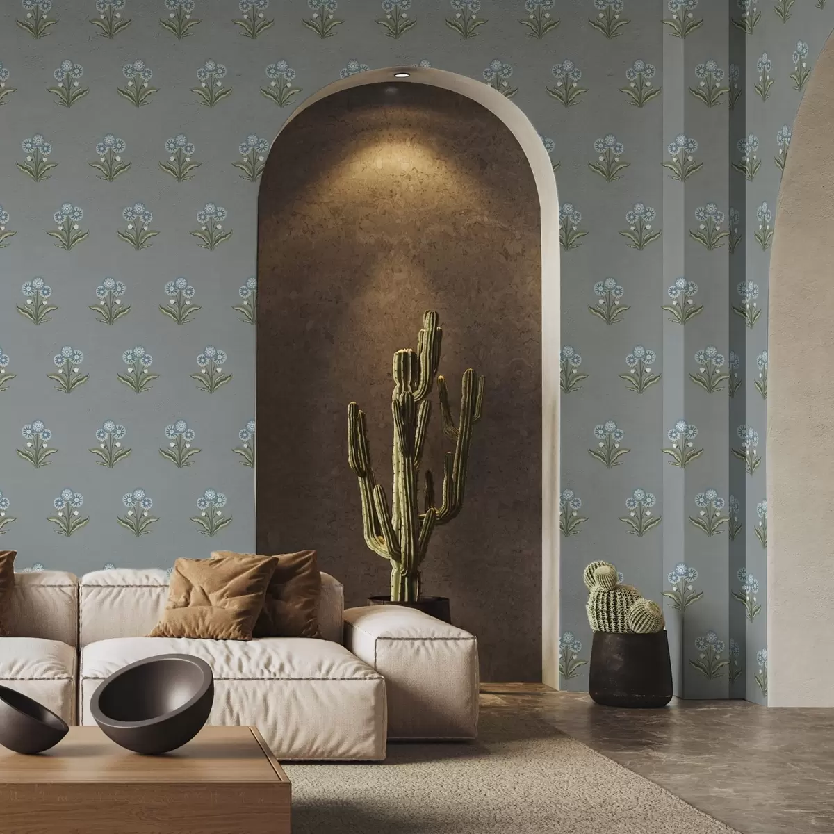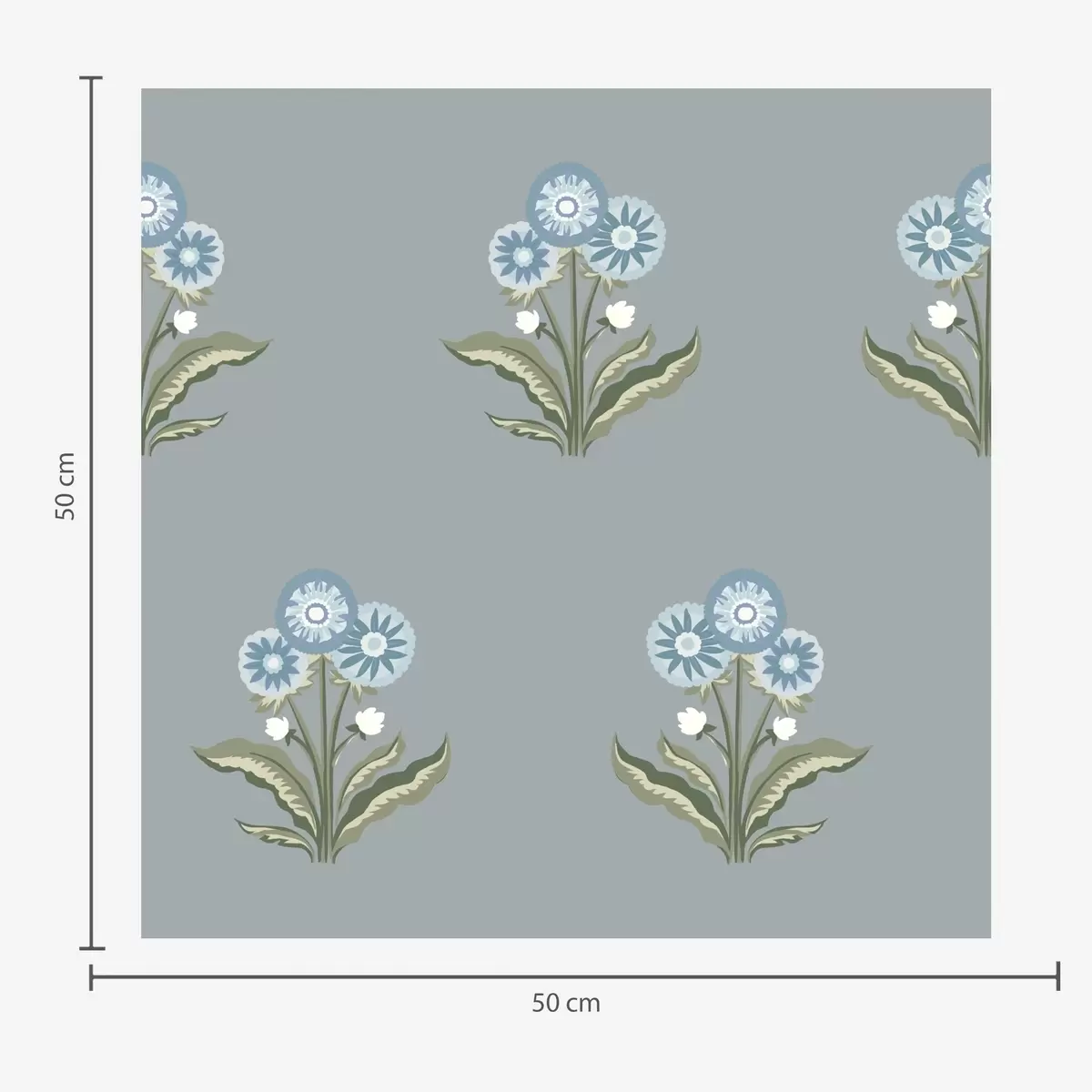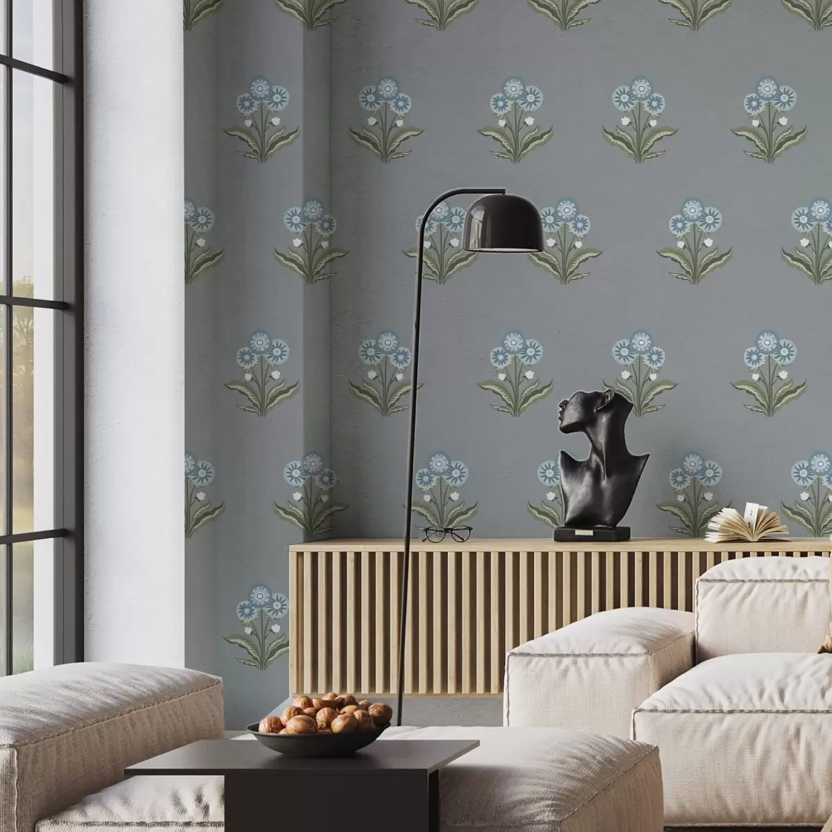 Papel de parede Flores estilizadas sobre fundo cinza-azulado, paleta de cores frias Nr. a00494v1