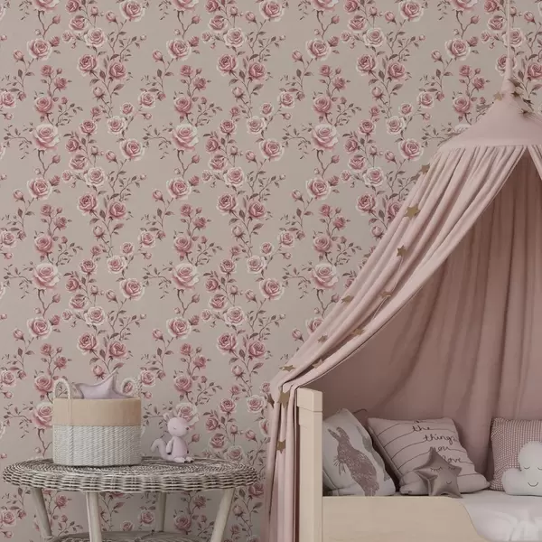 Papel de parede Rosas em pó sobre bege — padrão vintage Nr. a00497