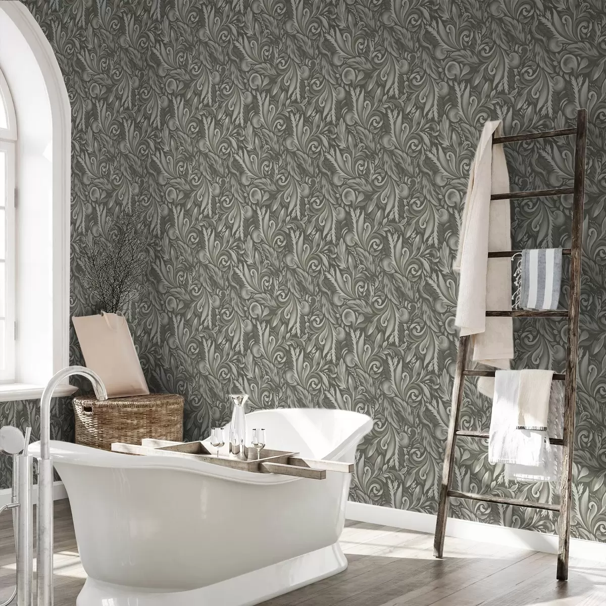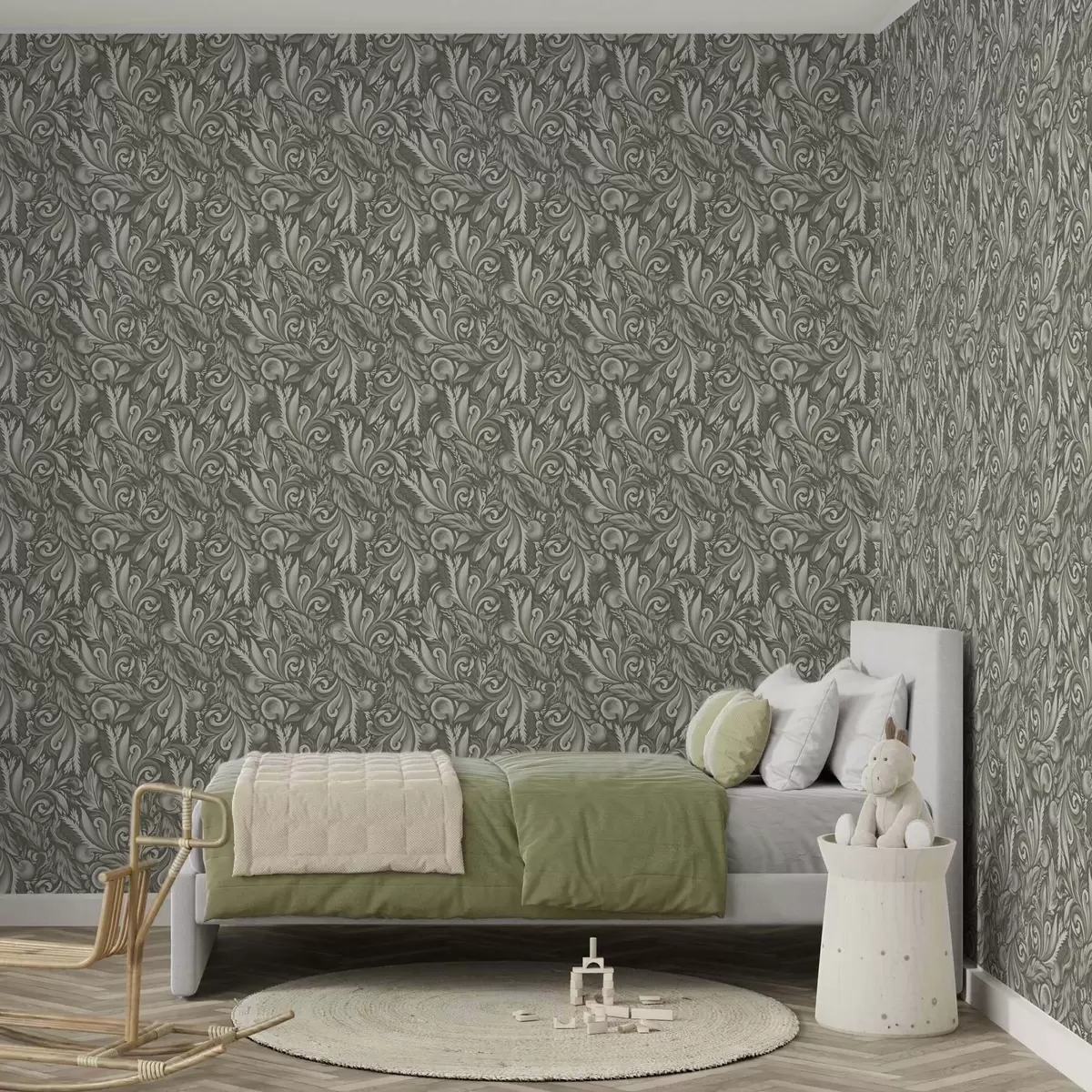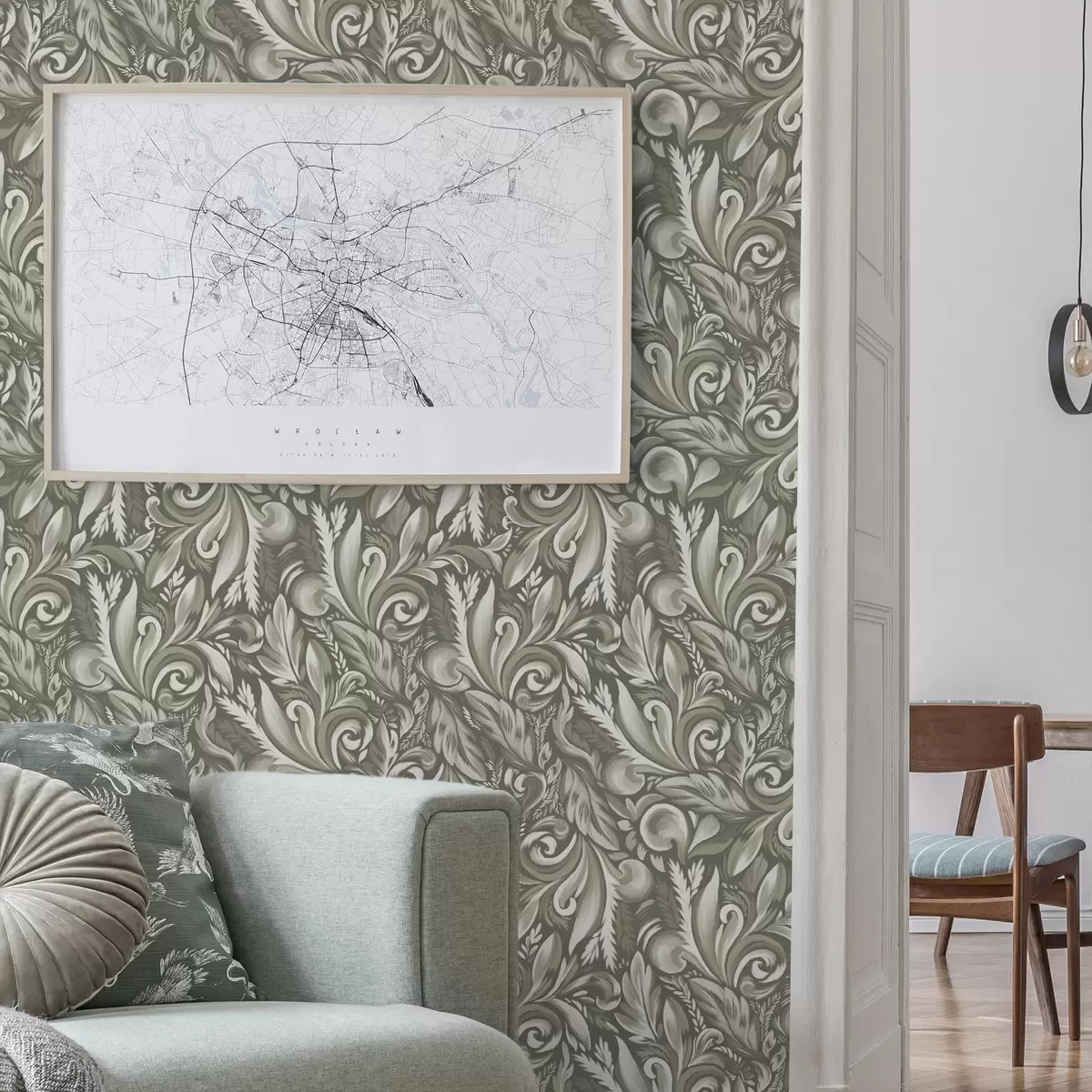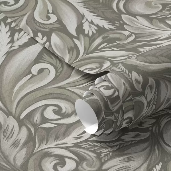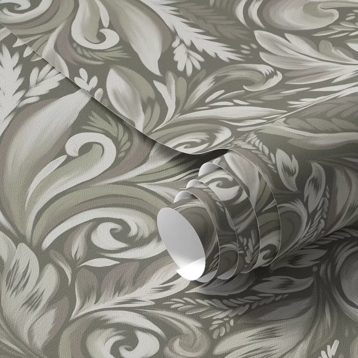 Papel de parede Volutas de acanto numa paleta de tons bege-azeitona Nr. a00501
