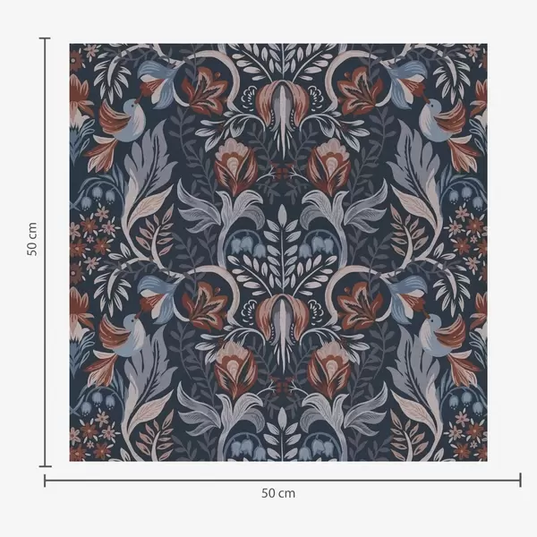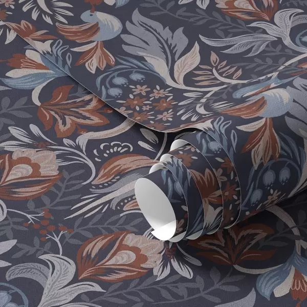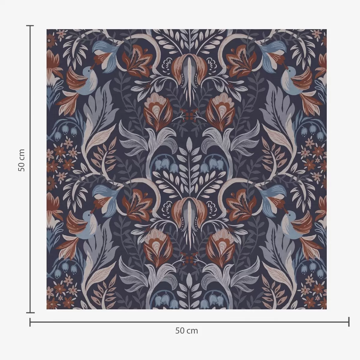 Papel de parede Flores e pássaros folclóricos sobre um fundo azul escuro Nr. a00502