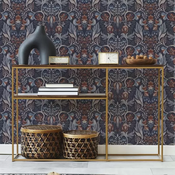 Papel de parede Flores e pássaros folclóricos sobre um fundo azul escuro Nr. a00502