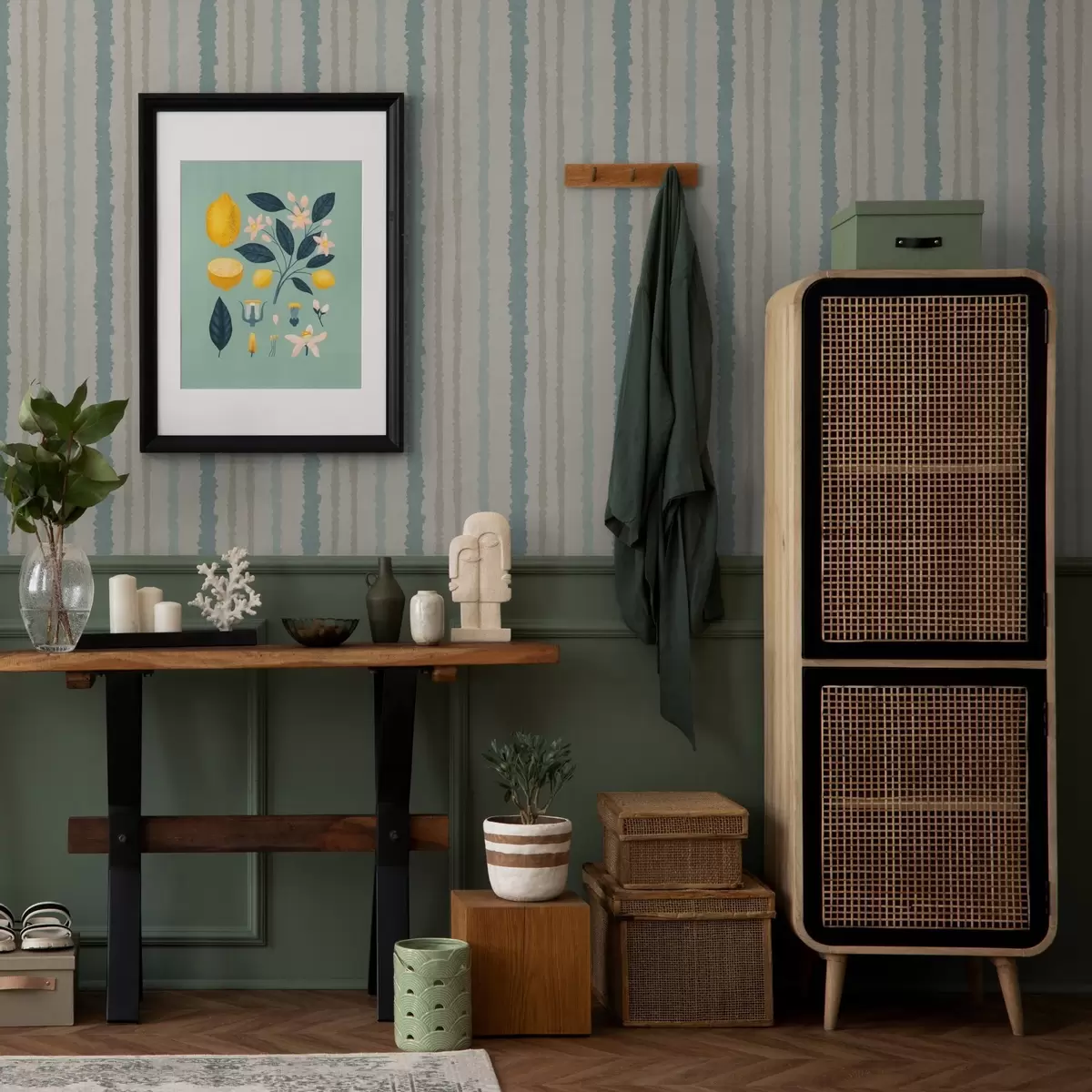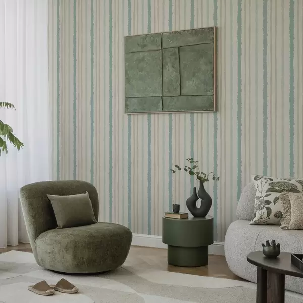 Papel de parede Riscas bege-turquesa com efeito pintado à mão Nr. a00510v1