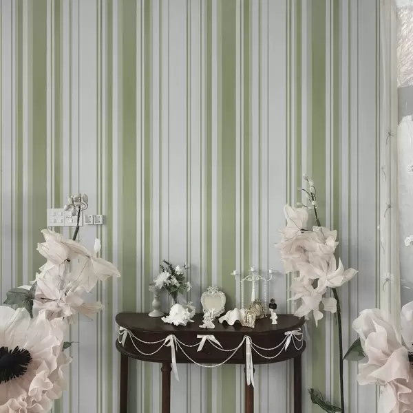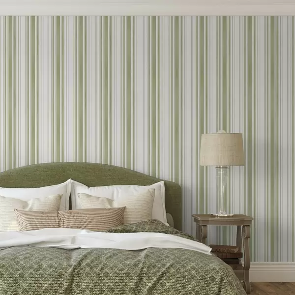 Papel de parede Riscas verdes de largura variável sobre um fundo claro a00523