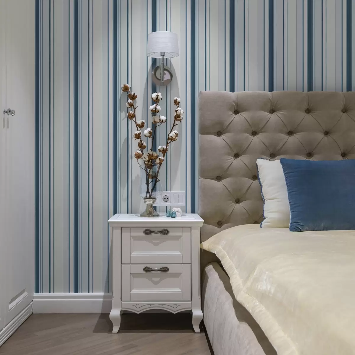 Papel de parede Riscas turquesa e azuis de largura variável sobre um fundo claro Nr. a00530