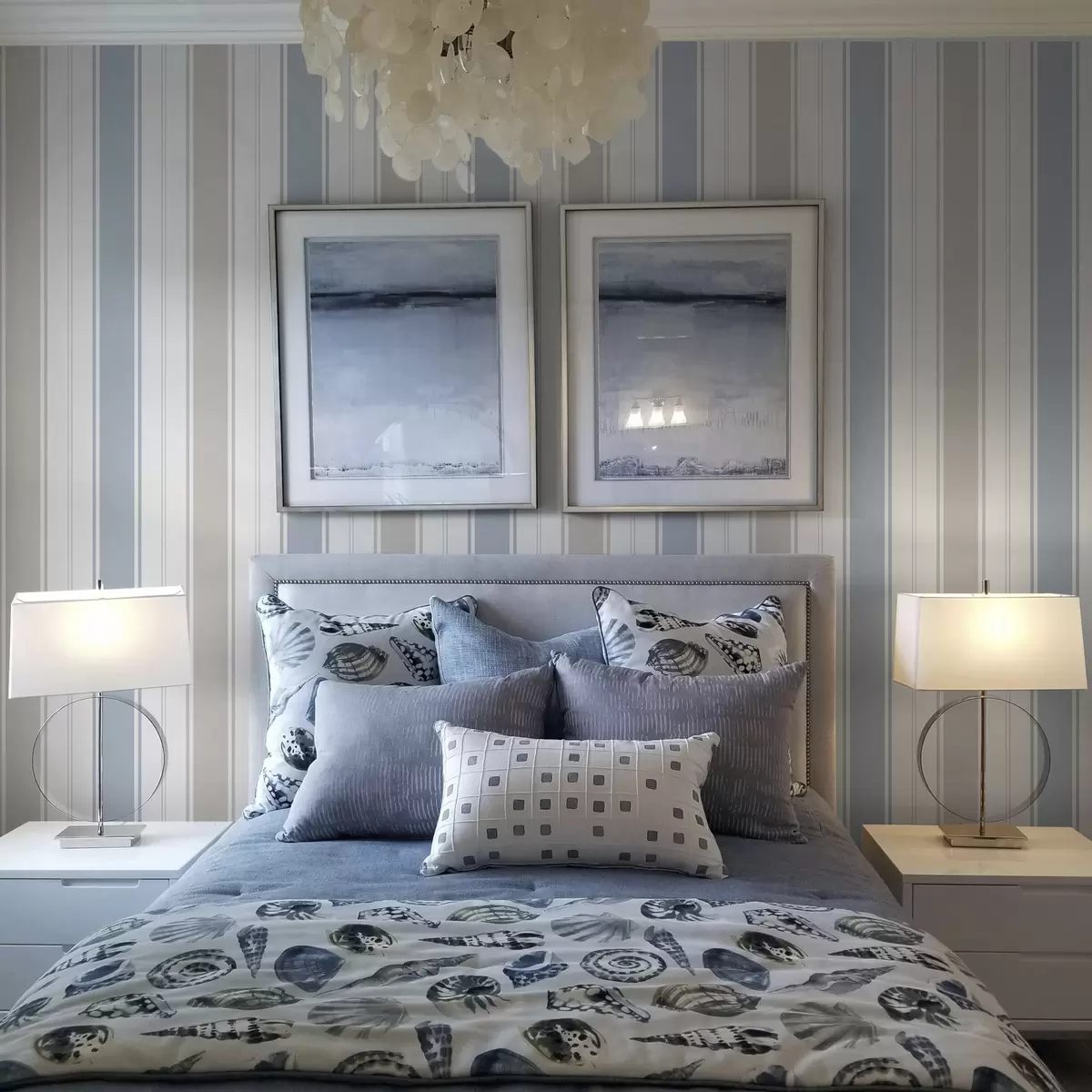 Papel de parede Riscas largas cinzentas e azuis sobre um fundo branco Nr. a00558