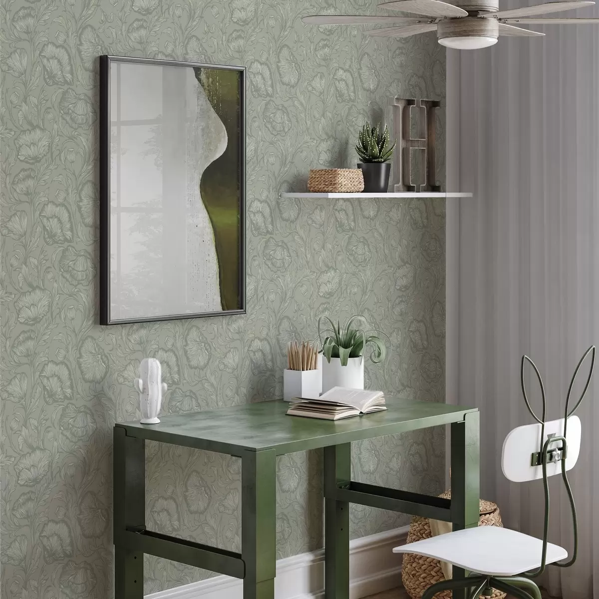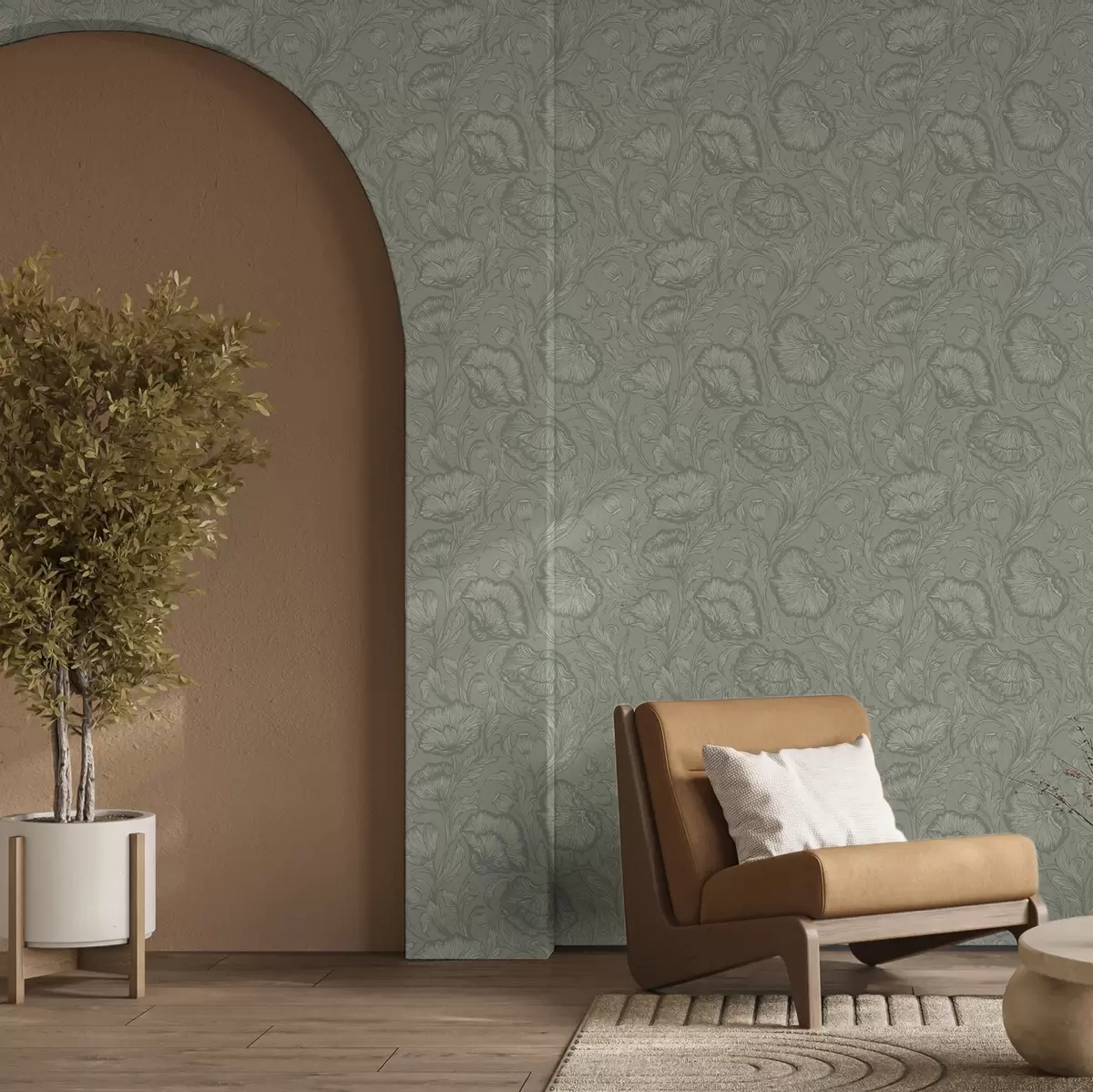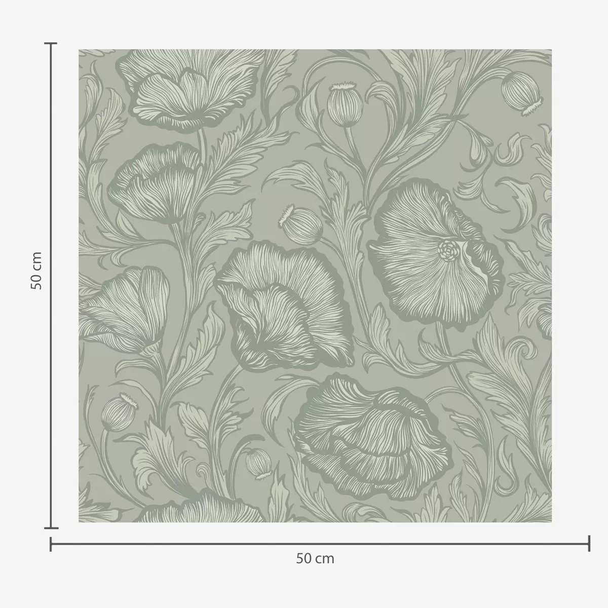Papel de parede Papoilas em linha contínua sobre fundo cinza-esverdeado Nr. a00572v1