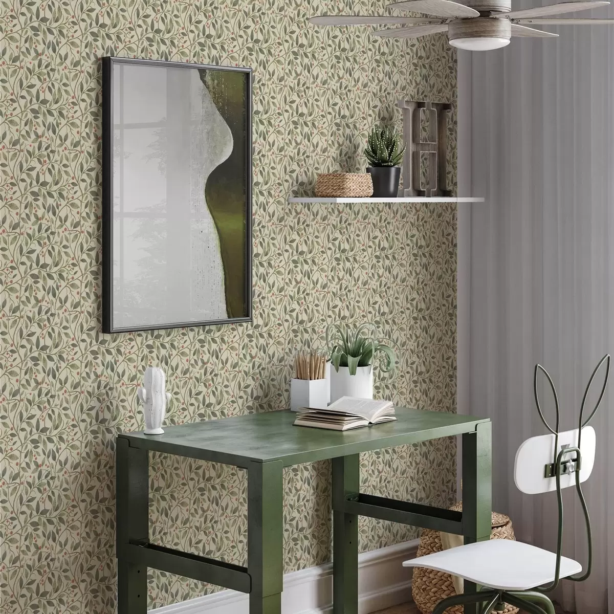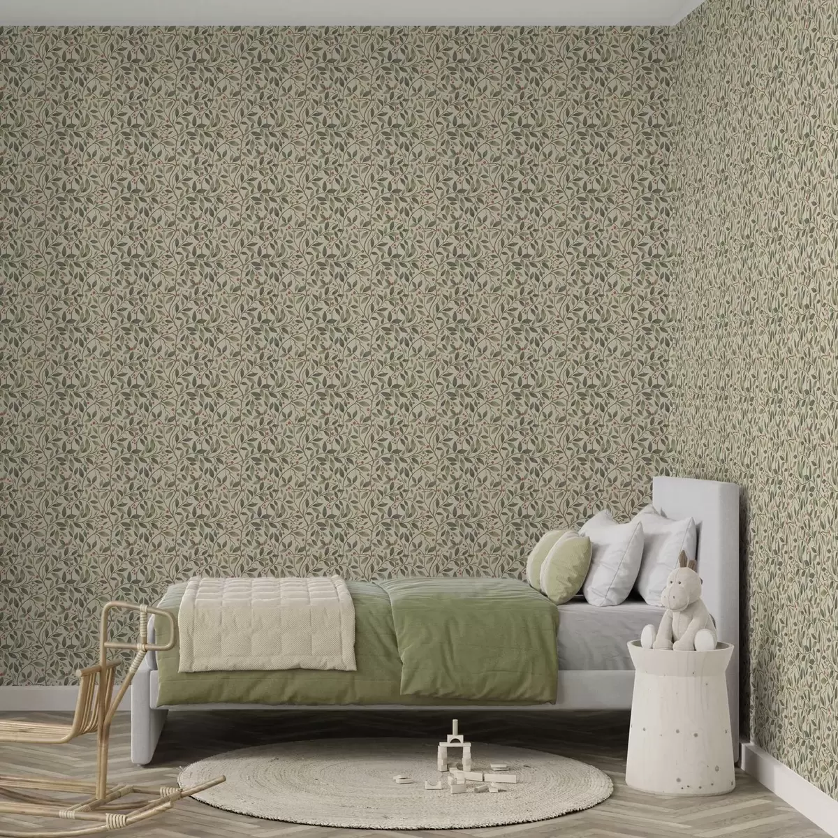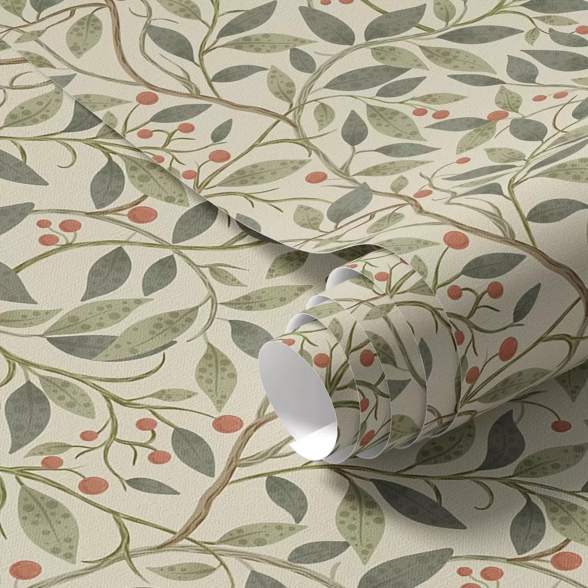 Papel de parede Ramos de oliveira com bagas sobre um fundo claro e quente Nr. a00573
