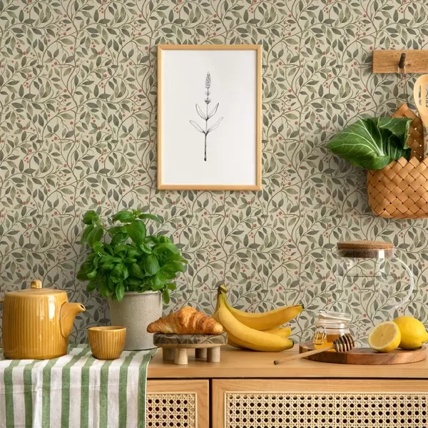 Papel de parede Ramos de oliveira com bagas sobre um fundo claro e quente Nr. a00573