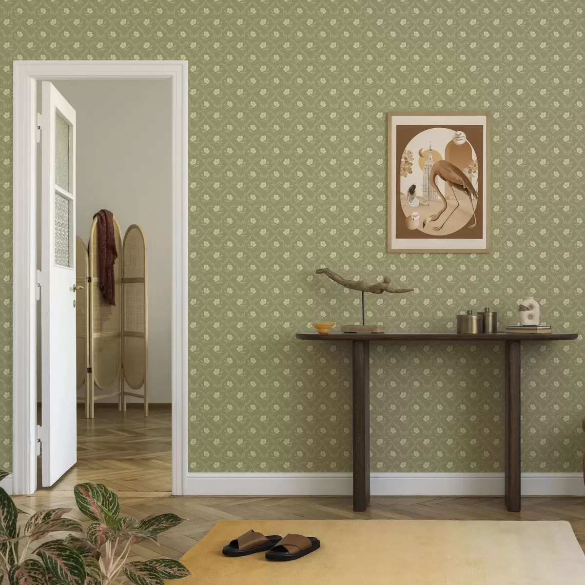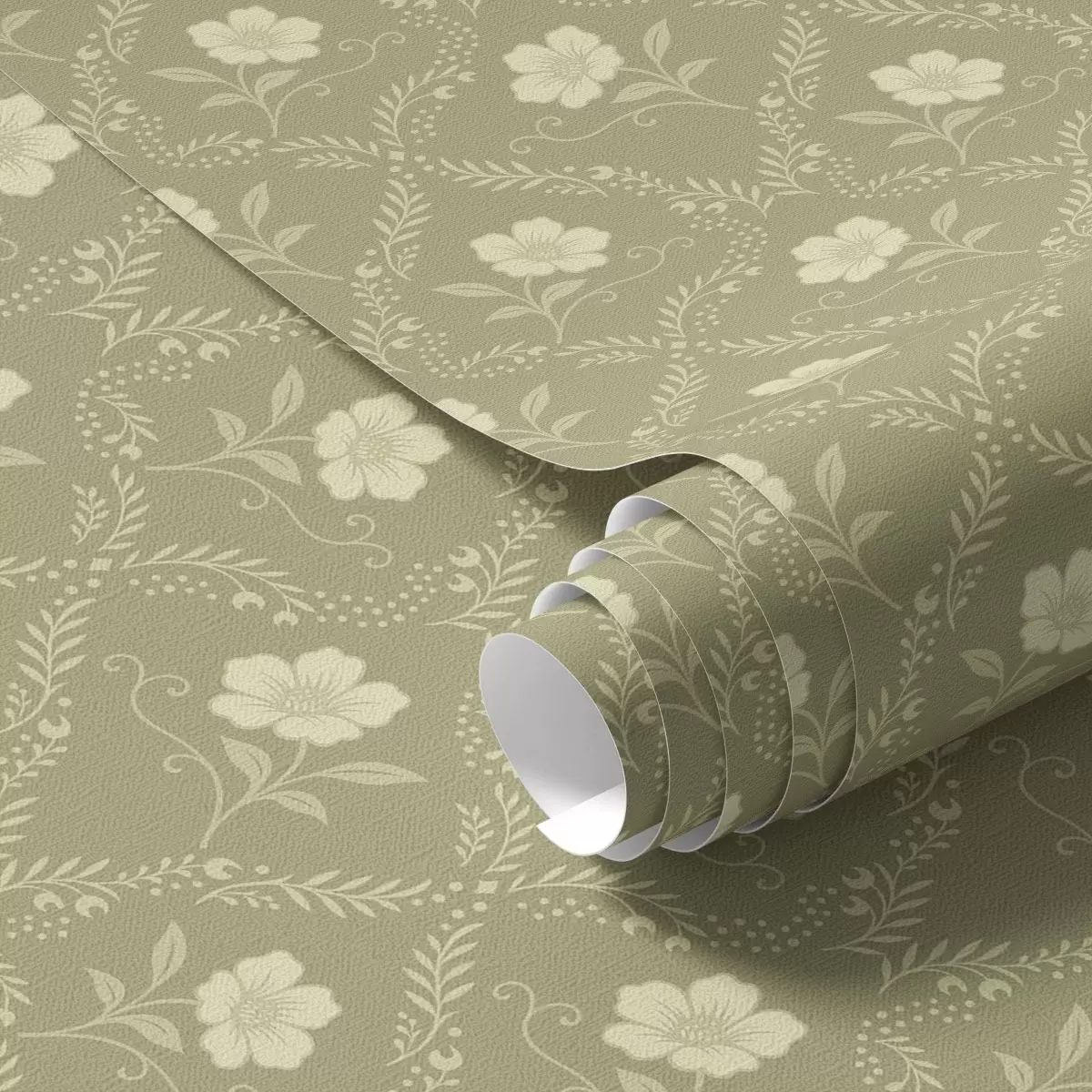 Papel de parede Treliça de oliveira com flores creme, ornamento retro Nr. a00585