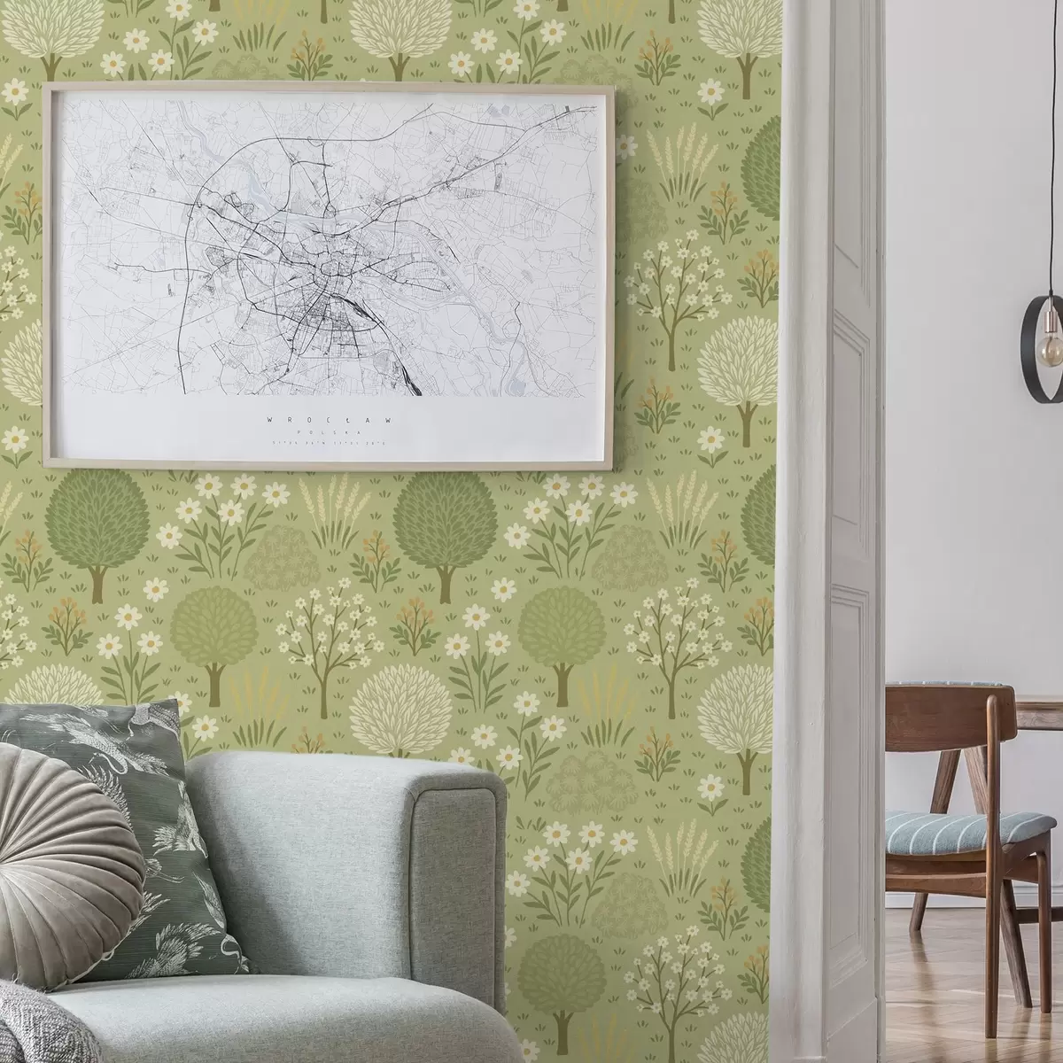 Papel de parede Jardim verde das crianças: árvores, flores e trigo Nr. a00586
