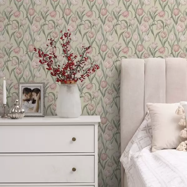 Papel de parede Tulipas rosa suave sobre um fundo bege delicado Nr. a00589