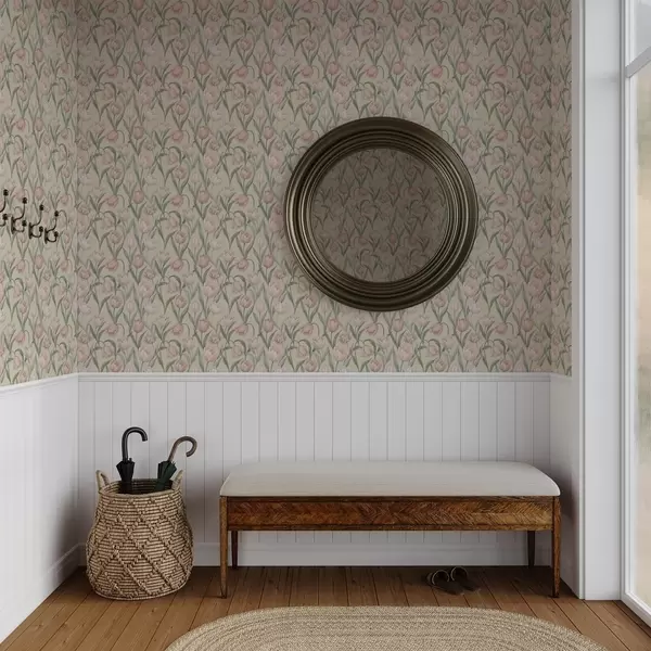 Papel de parede Tulipas rosa suave sobre um fundo bege delicado Nr. a00589