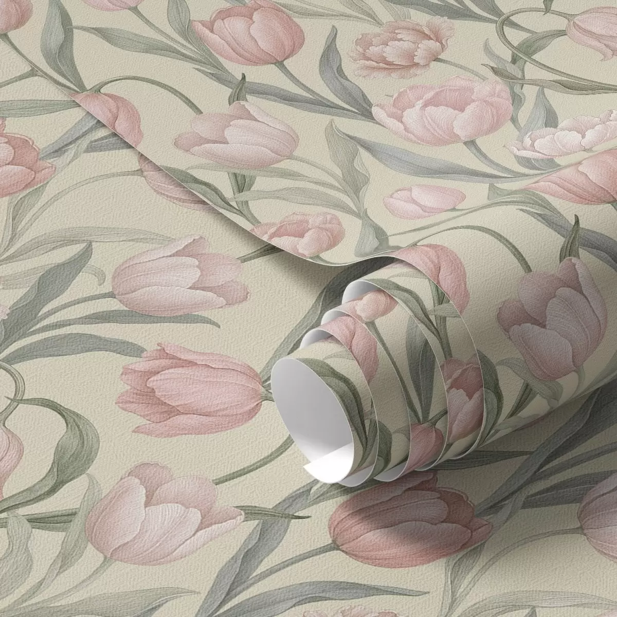 Papel de parede Tulipas rosa suave sobre um fundo bege delicado Nr. a00589