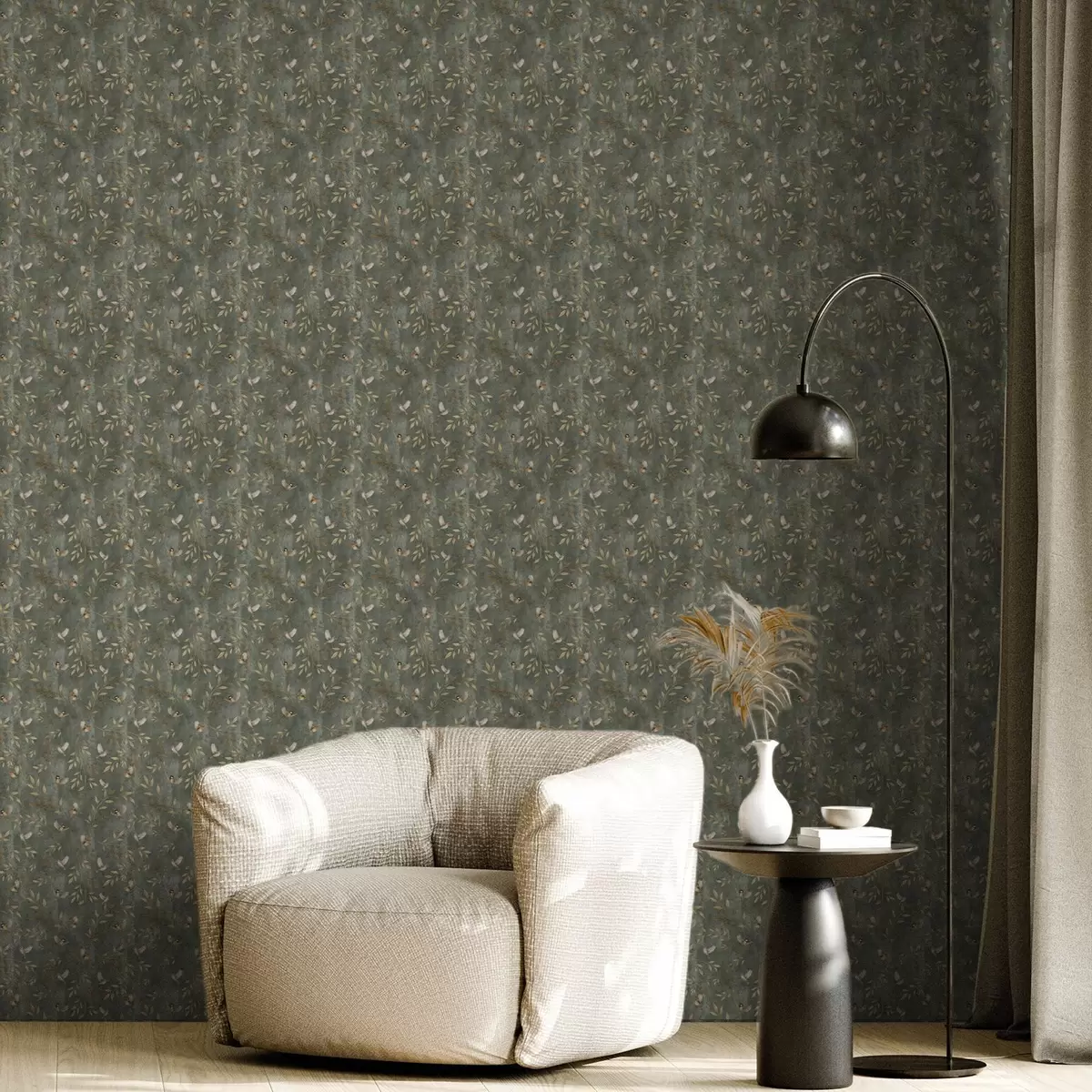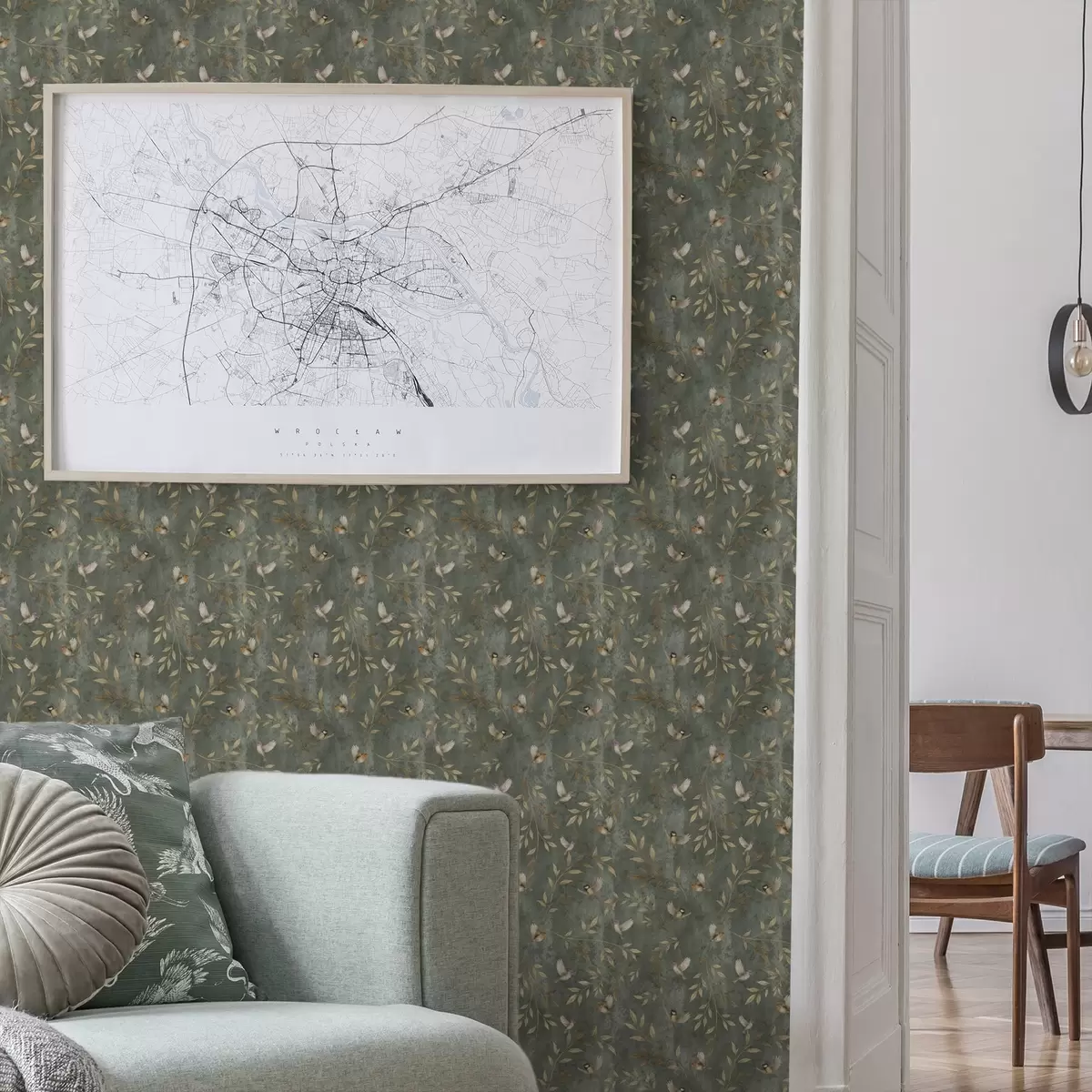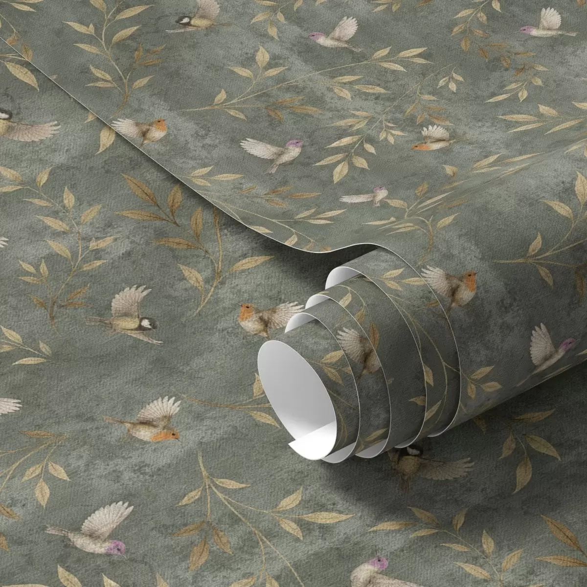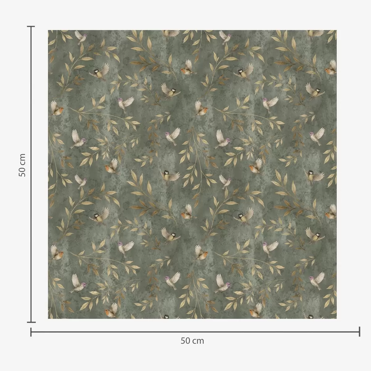 Papel de parede Pássaros em folhagem alaranjada sobre um fundo verde intenso Nr. a00591