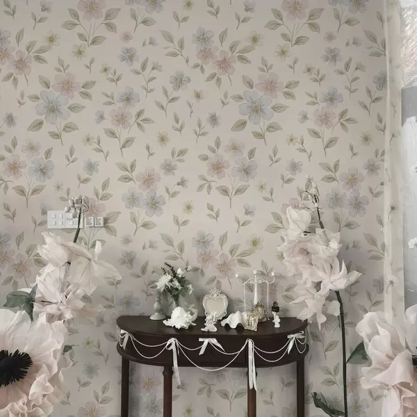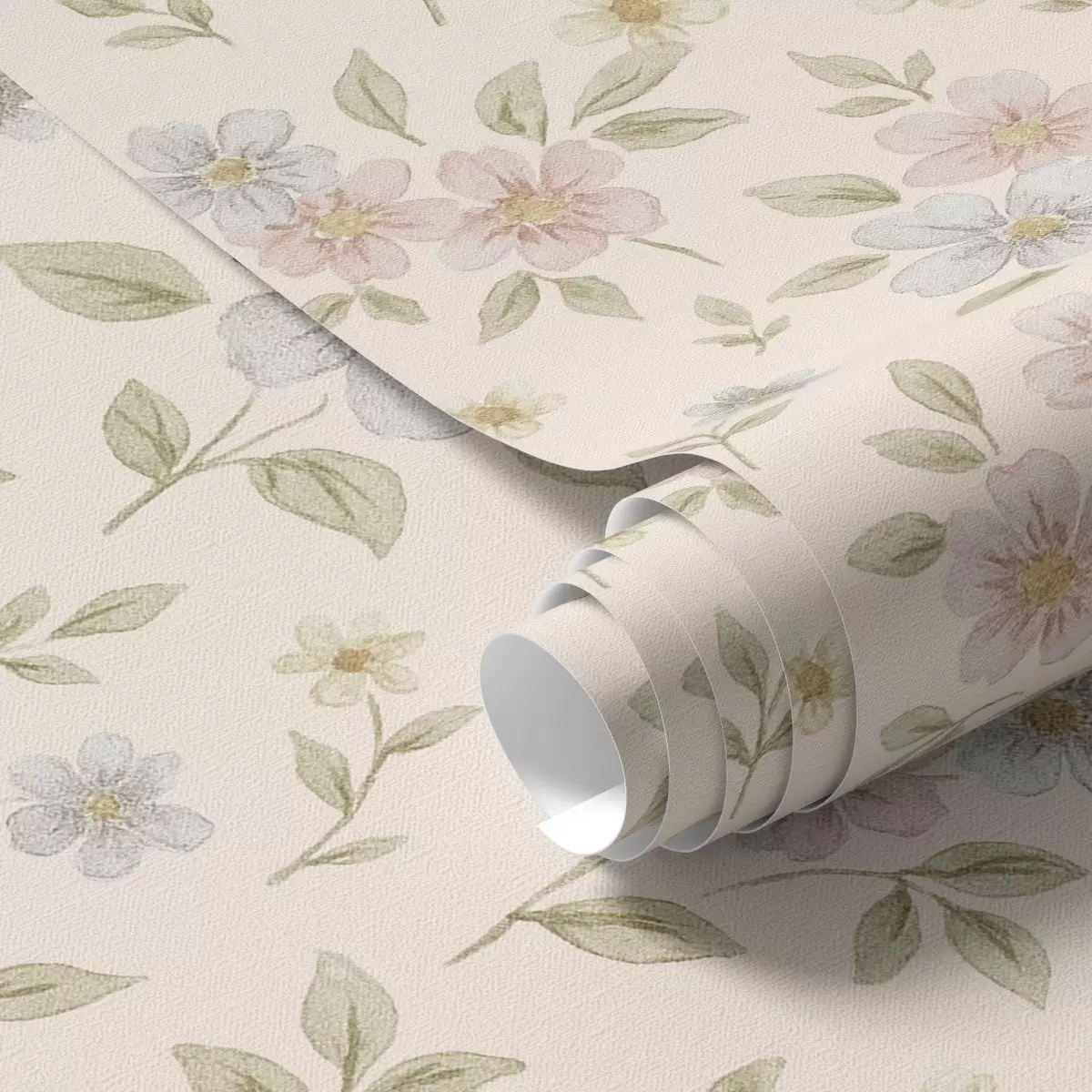 Papel de parede Flores campestres em tons pastel sobre fundo creme Nr. a00596