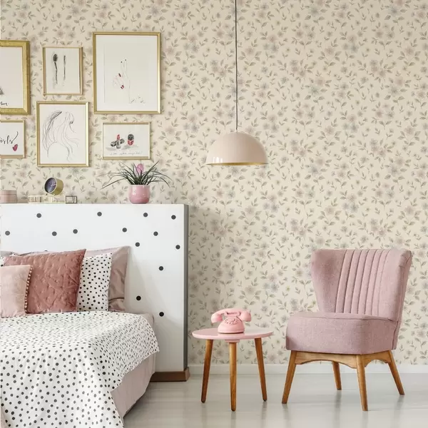 Papel de parede Flores campestres em tons pastel sobre fundo creme Nr. a00596