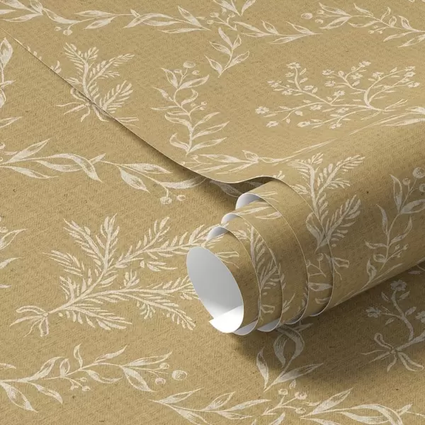 Papel de parede Grinaldas brancas de ervas e flores sobre um fundo mostarda Nr. a00599