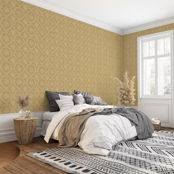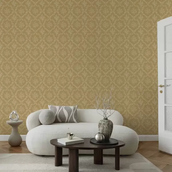 Papel de parede Grinaldas brancas de ervas e flores sobre um fundo mostarda Nr. a00599