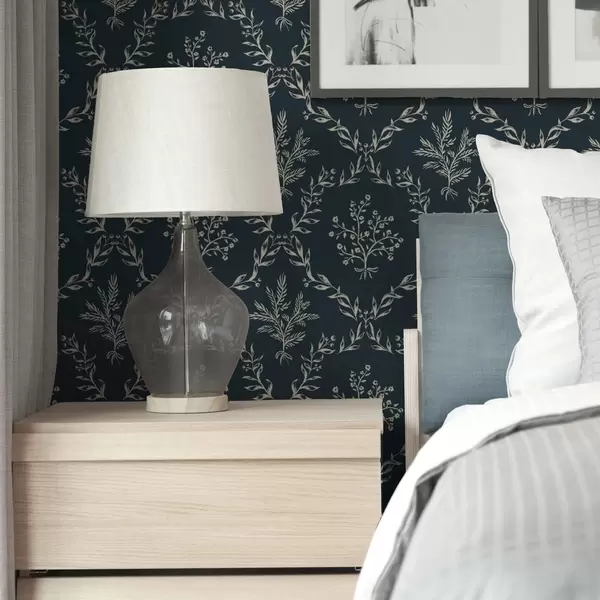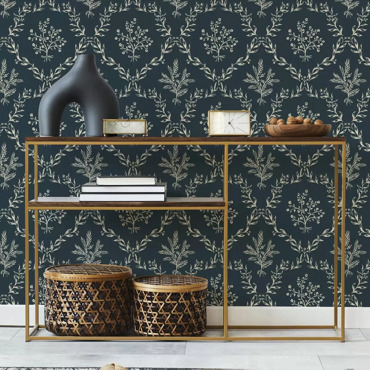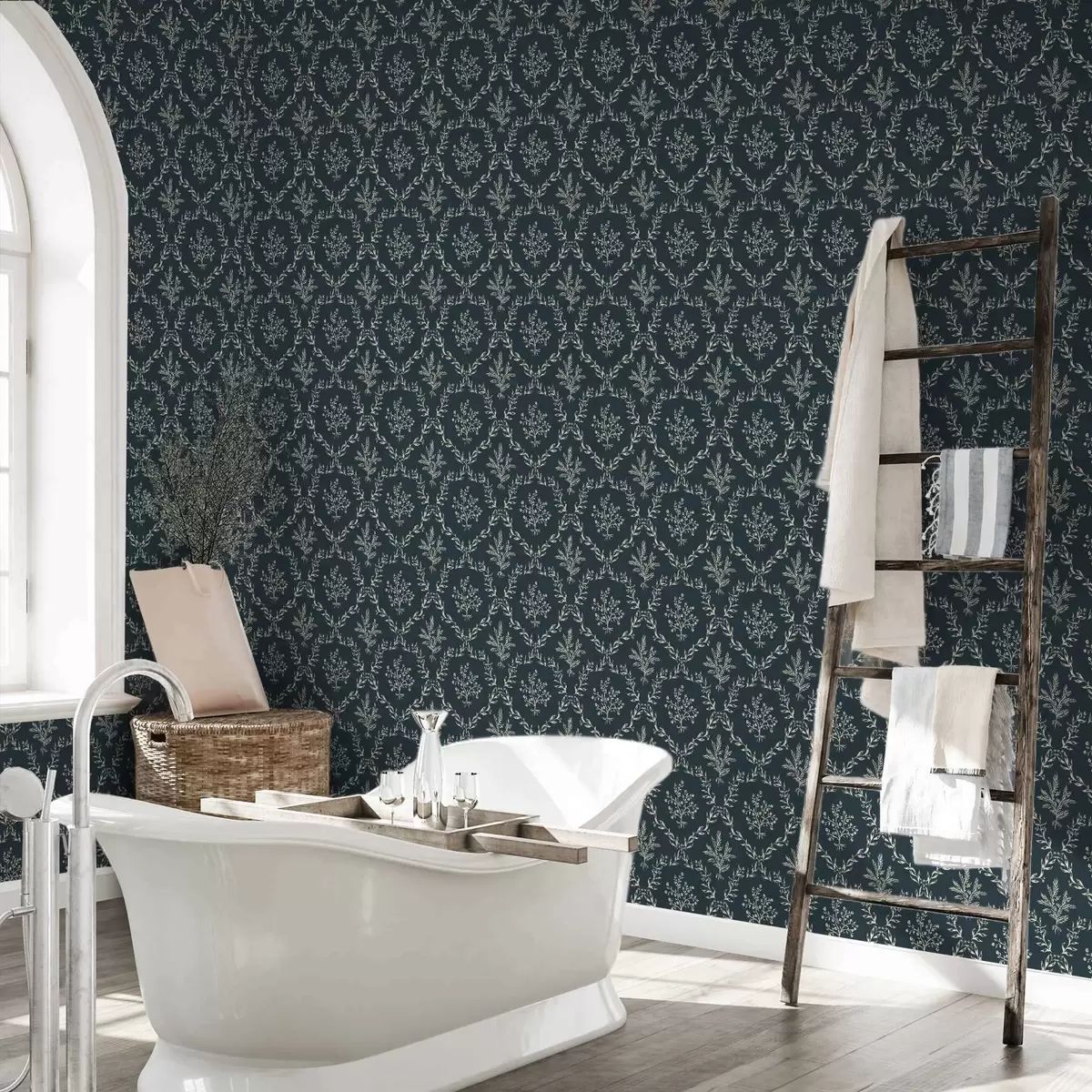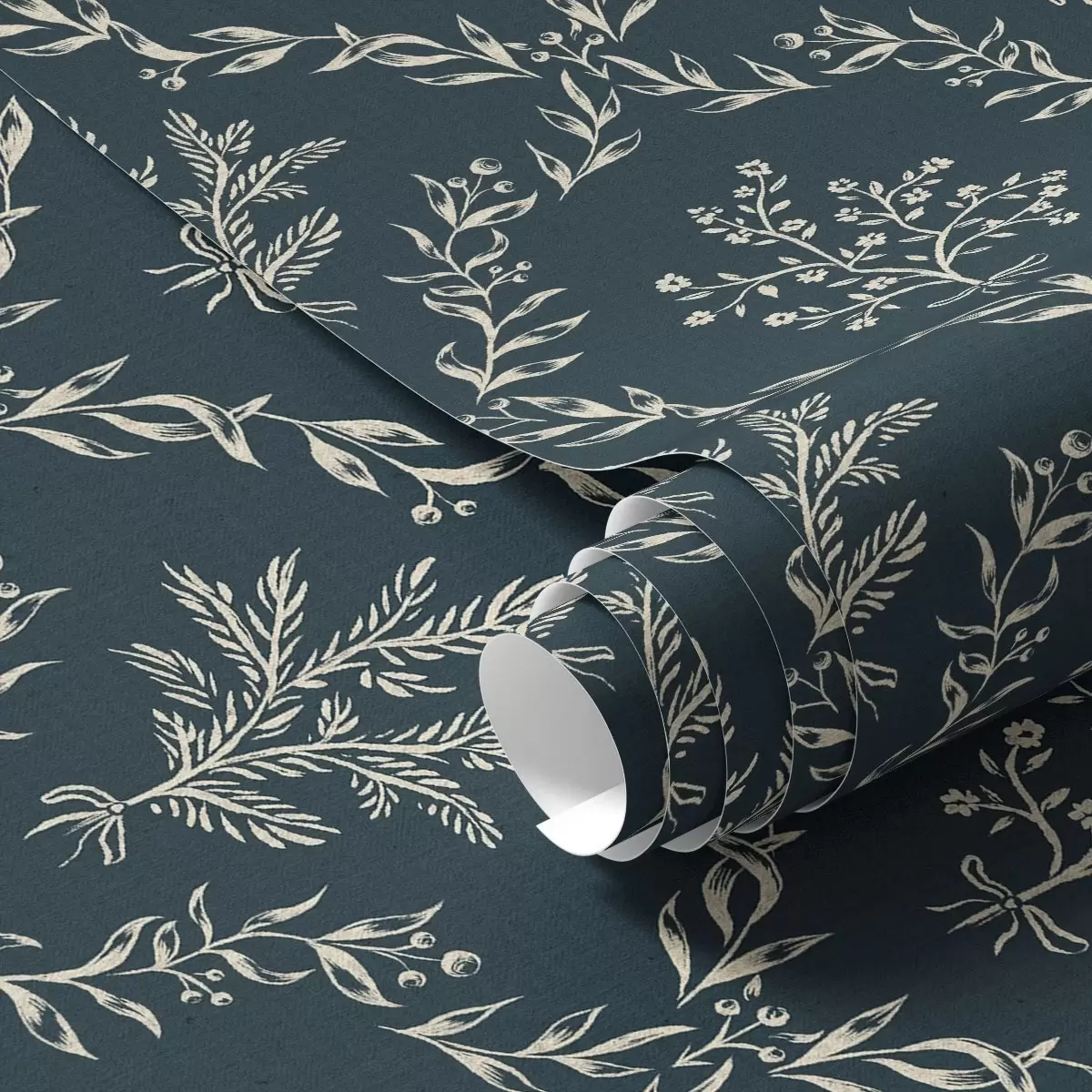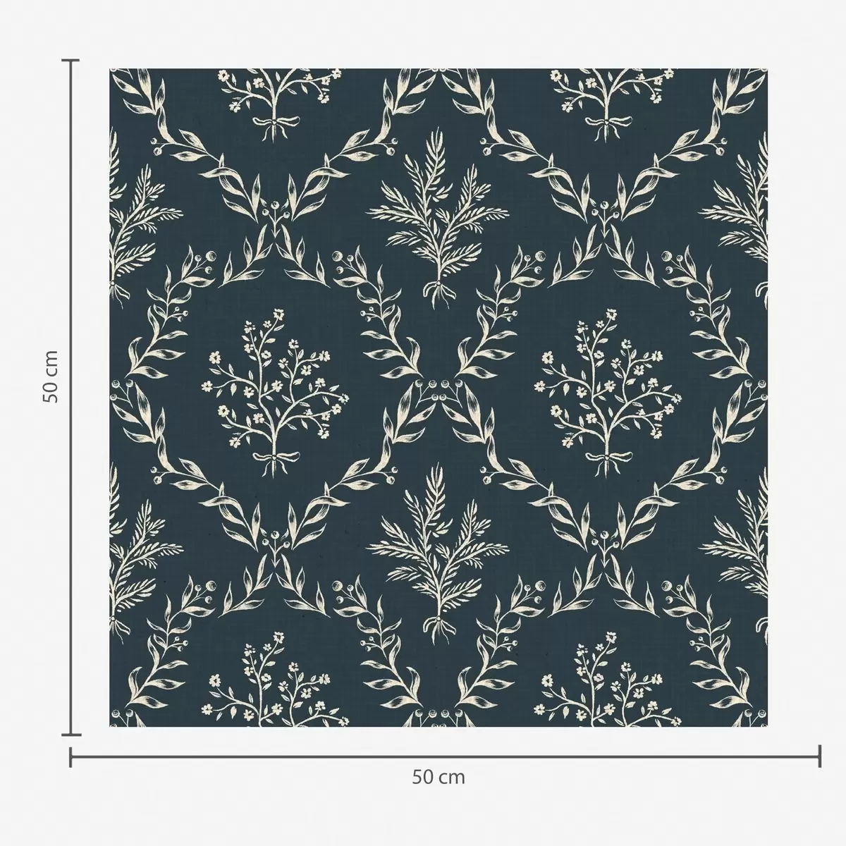 Papel de parede Grinaldas brancas de ervas e flores sobre um fundo azul-petróleo escuro Nr. a00599v2