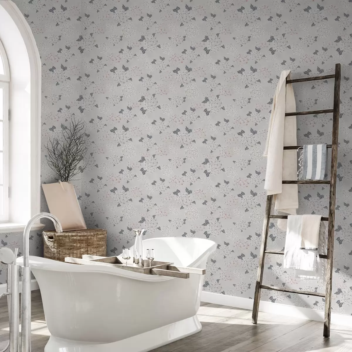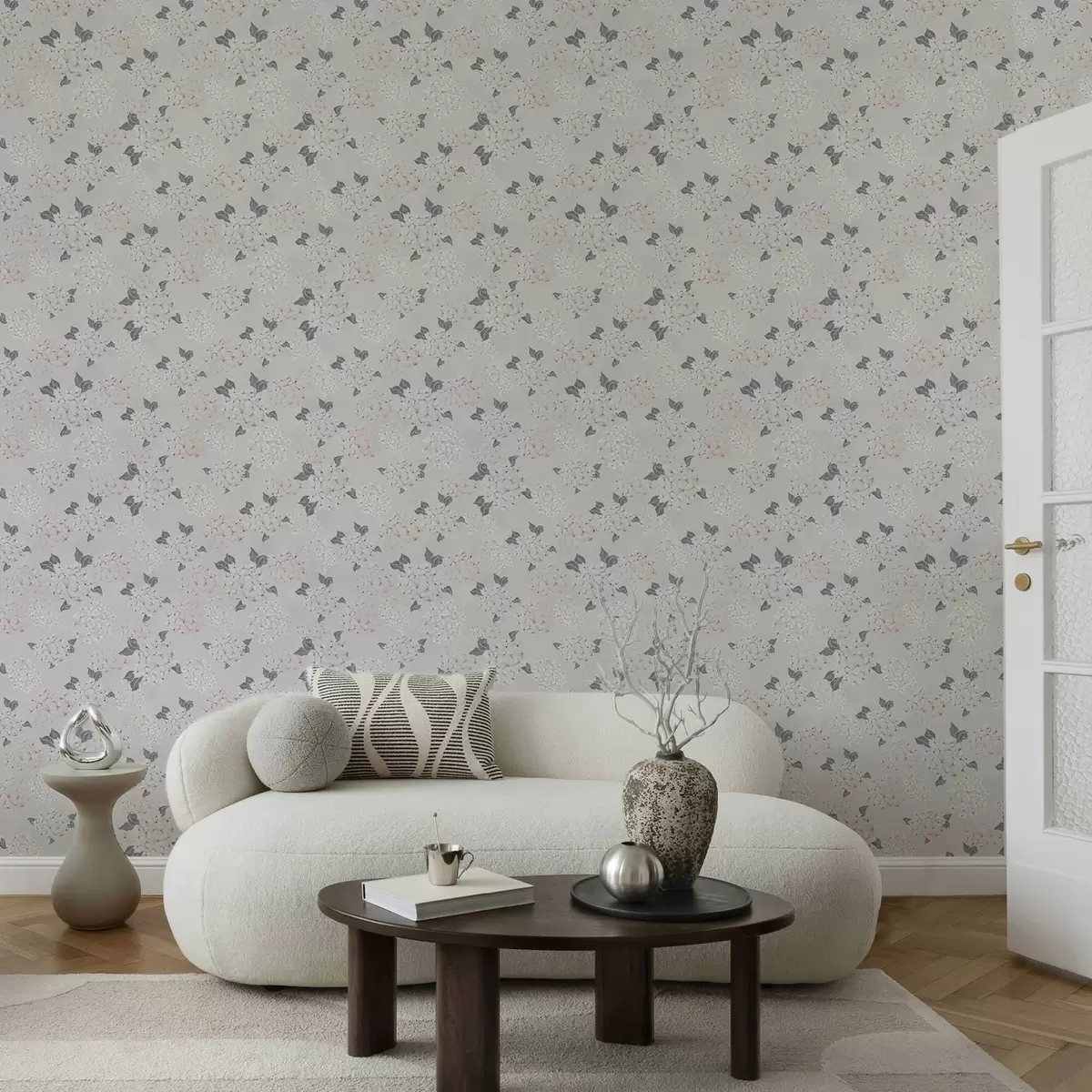Papel de parede Flores arejadas sobre um fundo claro, tons suaves de rosa-cinza Nr. a00600