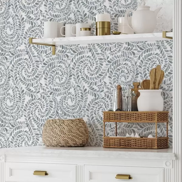 Papel de parede Espirais folhosas em tons frios de cinza-azulado Nr. a00602v1