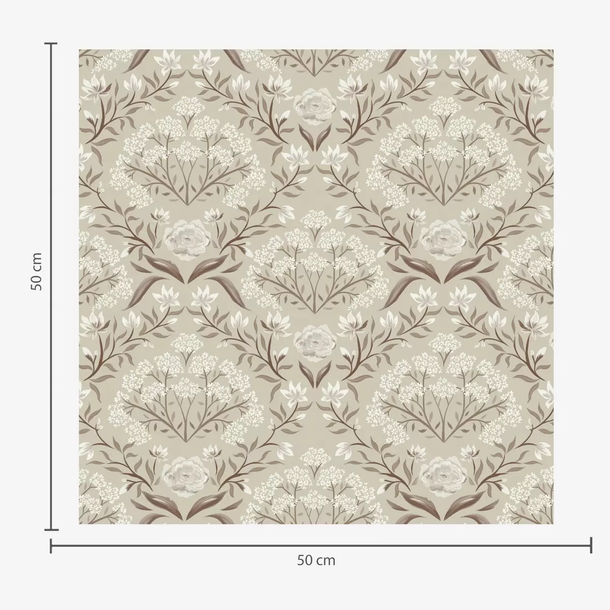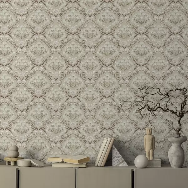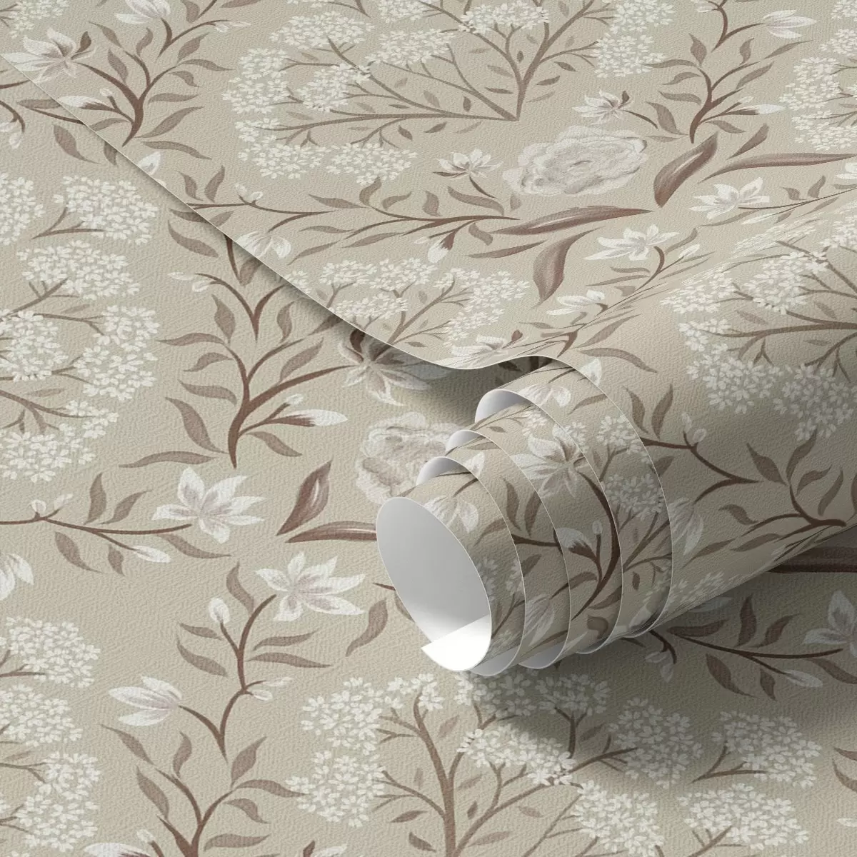 Papel de parede Damasco bege: peônias, snowdrops e cachos rendados Nr. a00603v1