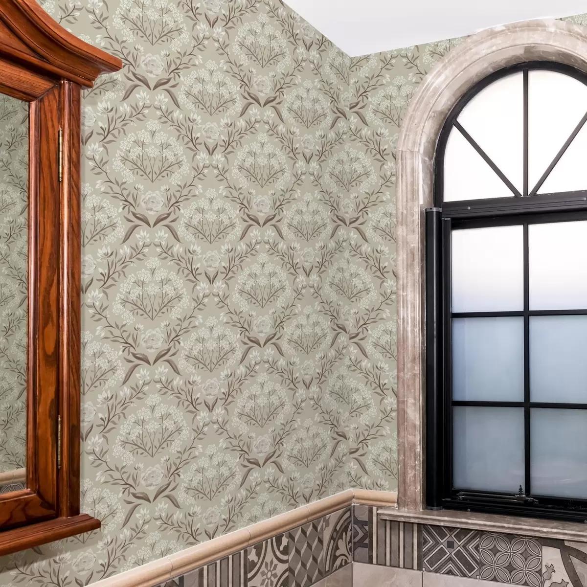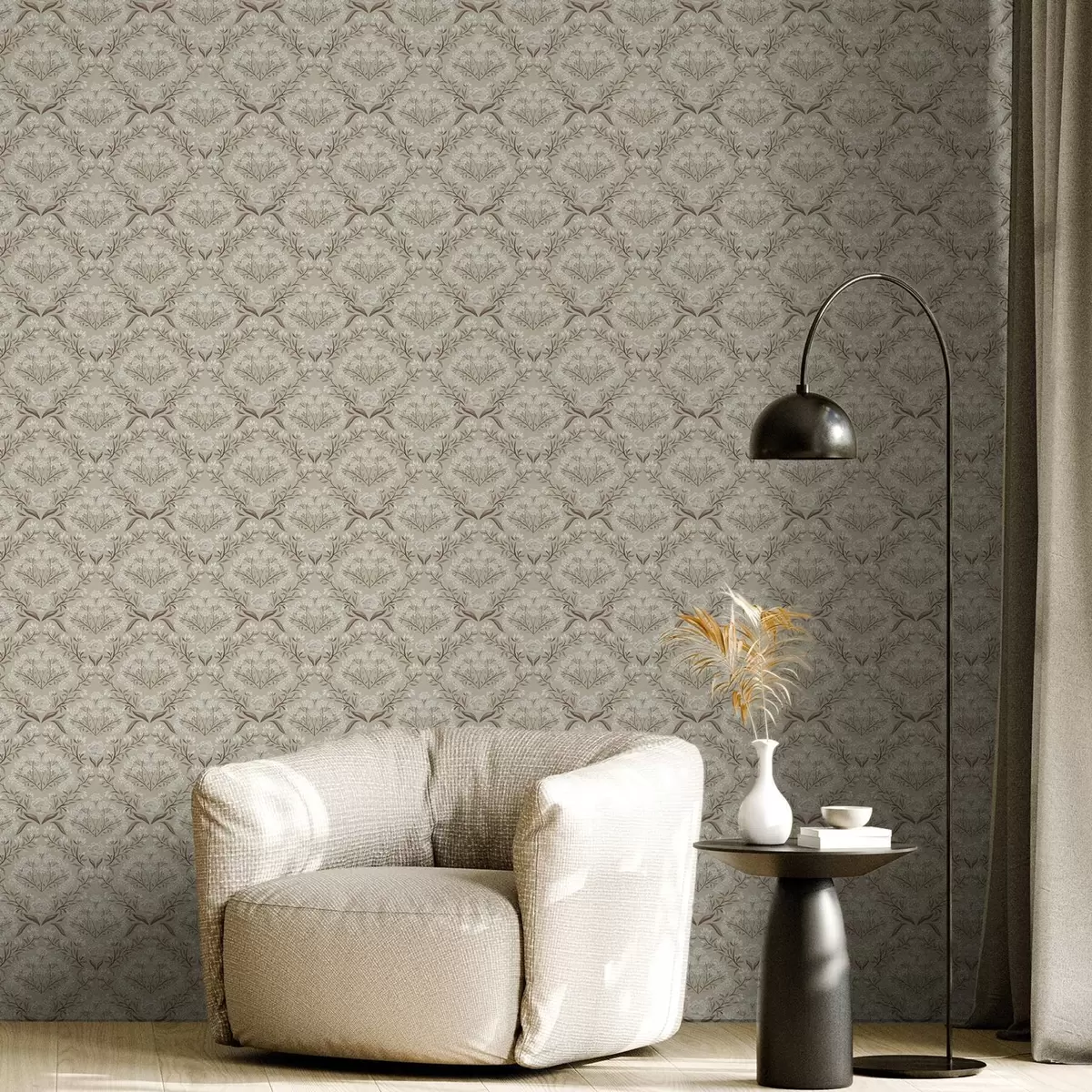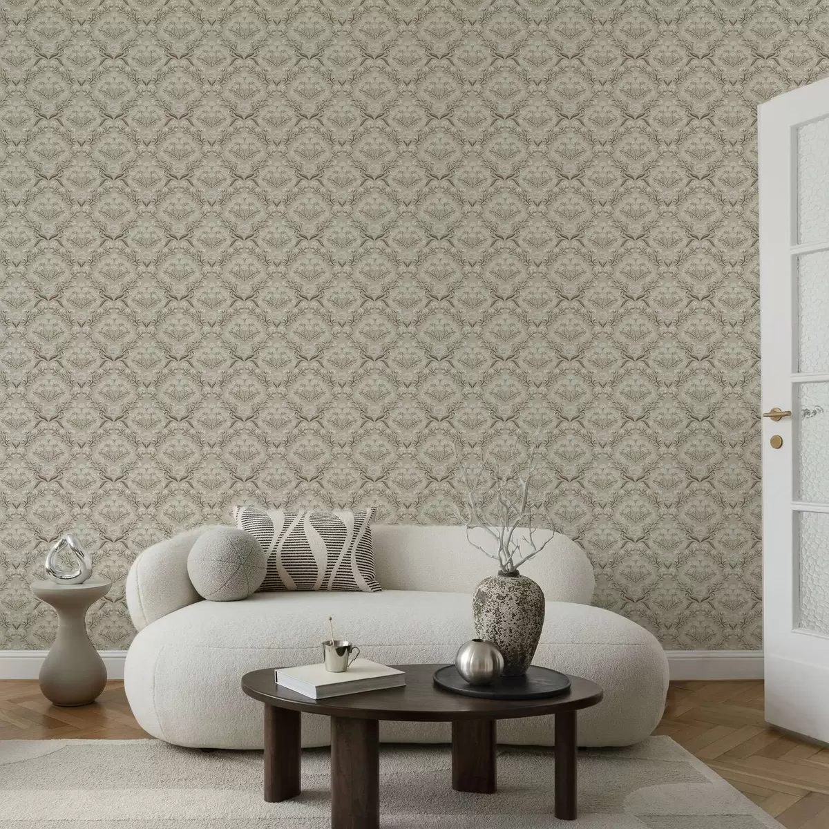 Papel de parede Damasco bege: peônias, snowdrops e cachos rendados Nr. a00603v1