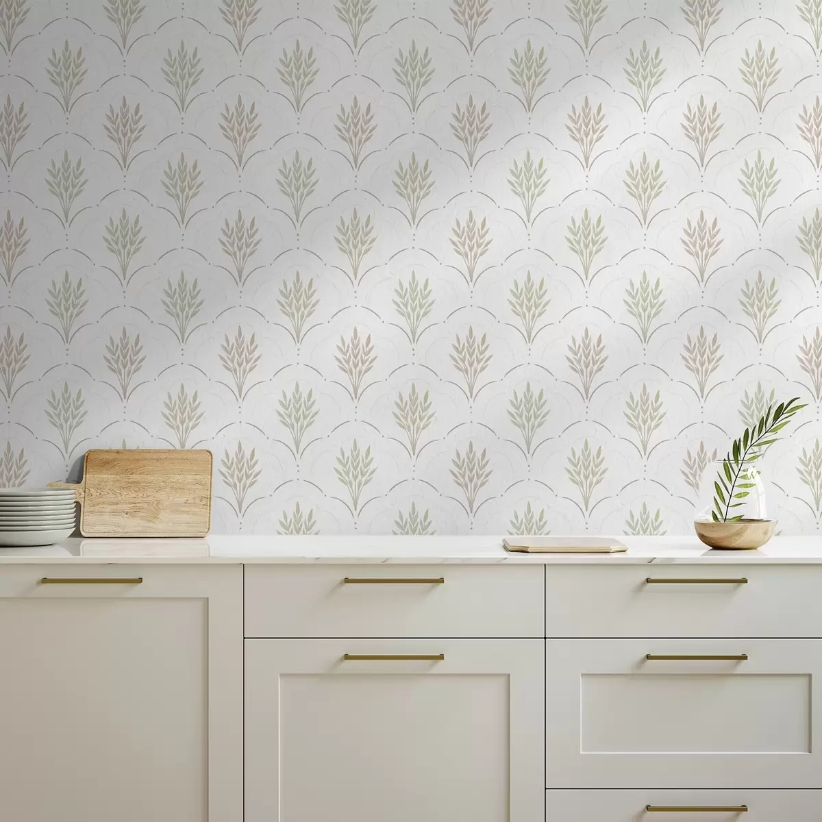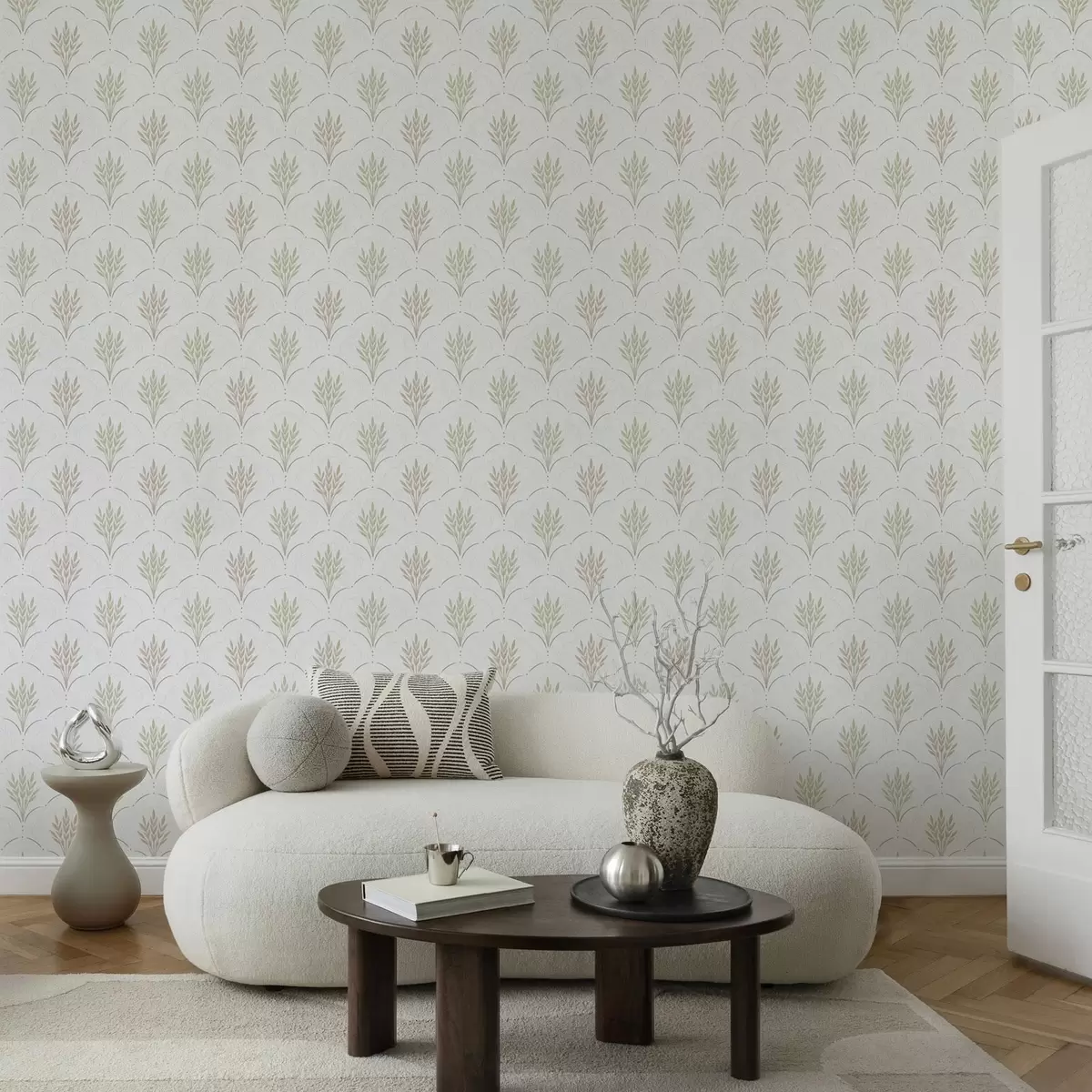 Papel de parede Trigo num ornamento arqueado, tons pastel suaves sobre fundo branco Nr. a00607v1