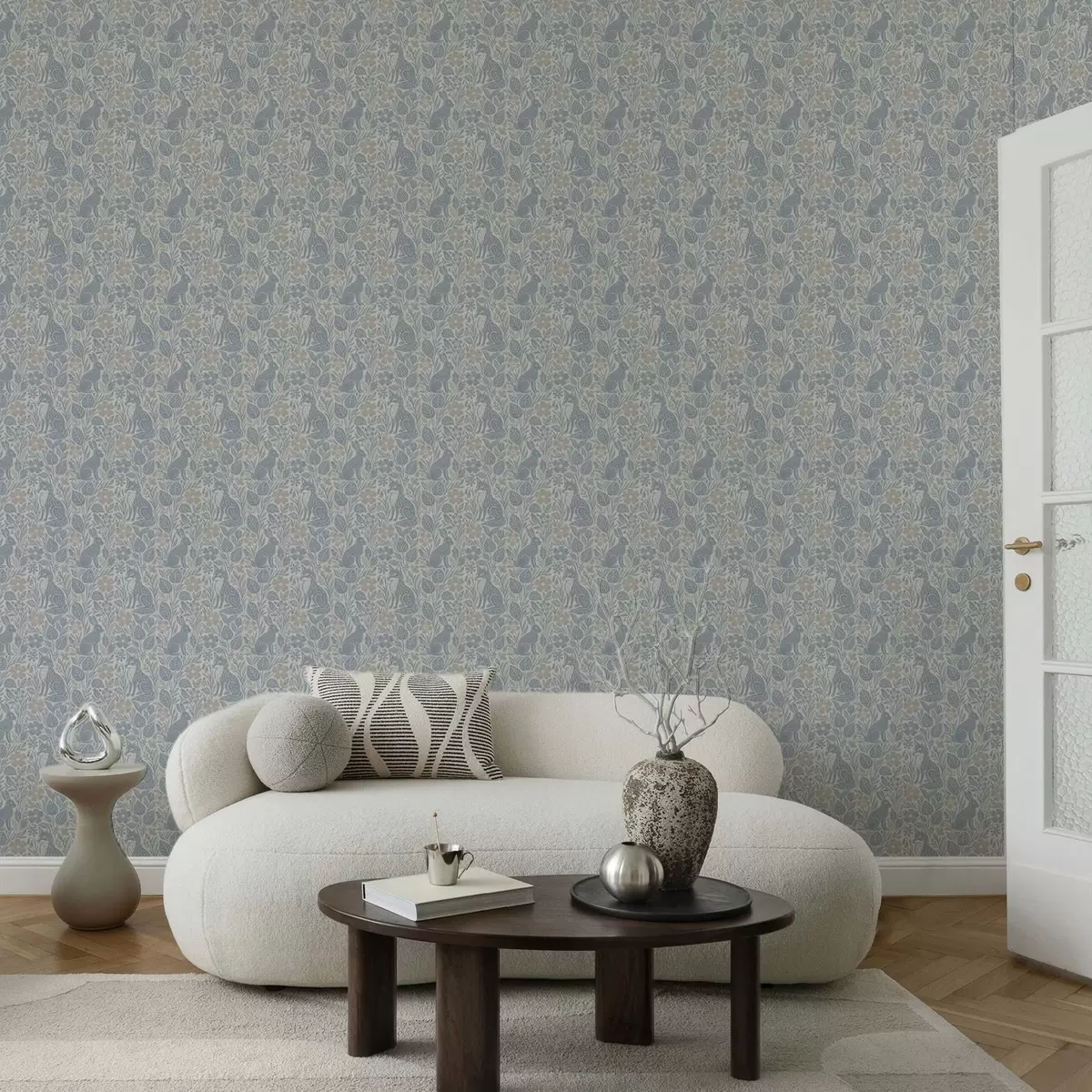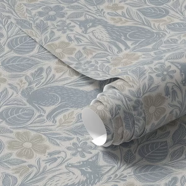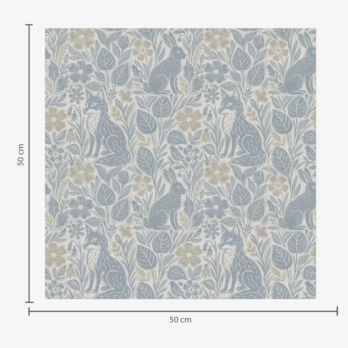 Papel de parede Animais da floresta e flores: raposa e lebre em tons de azul Nr. a00613
