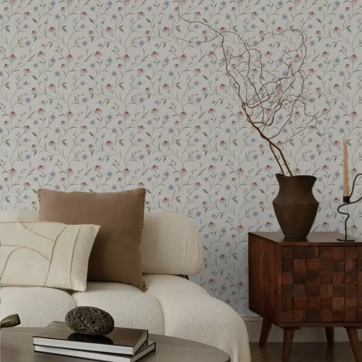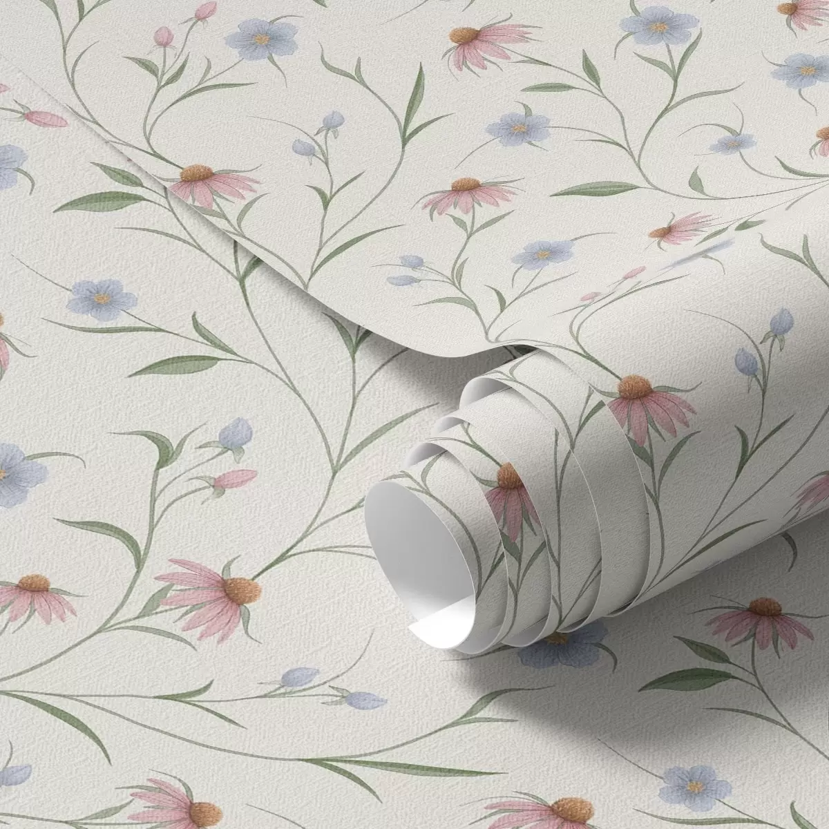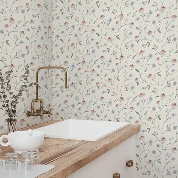 Papel de parede Margaridas do campo e equinácea sobre fundo creme, leveza Nr. a00614