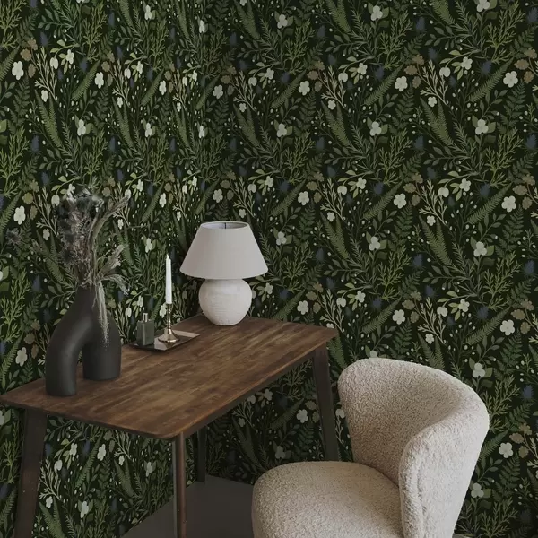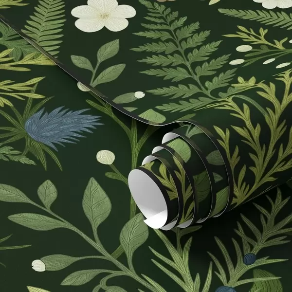 Papel de parede Ervas e bagas silvestres sobre um fundo verde escuro Nr. a00621v2