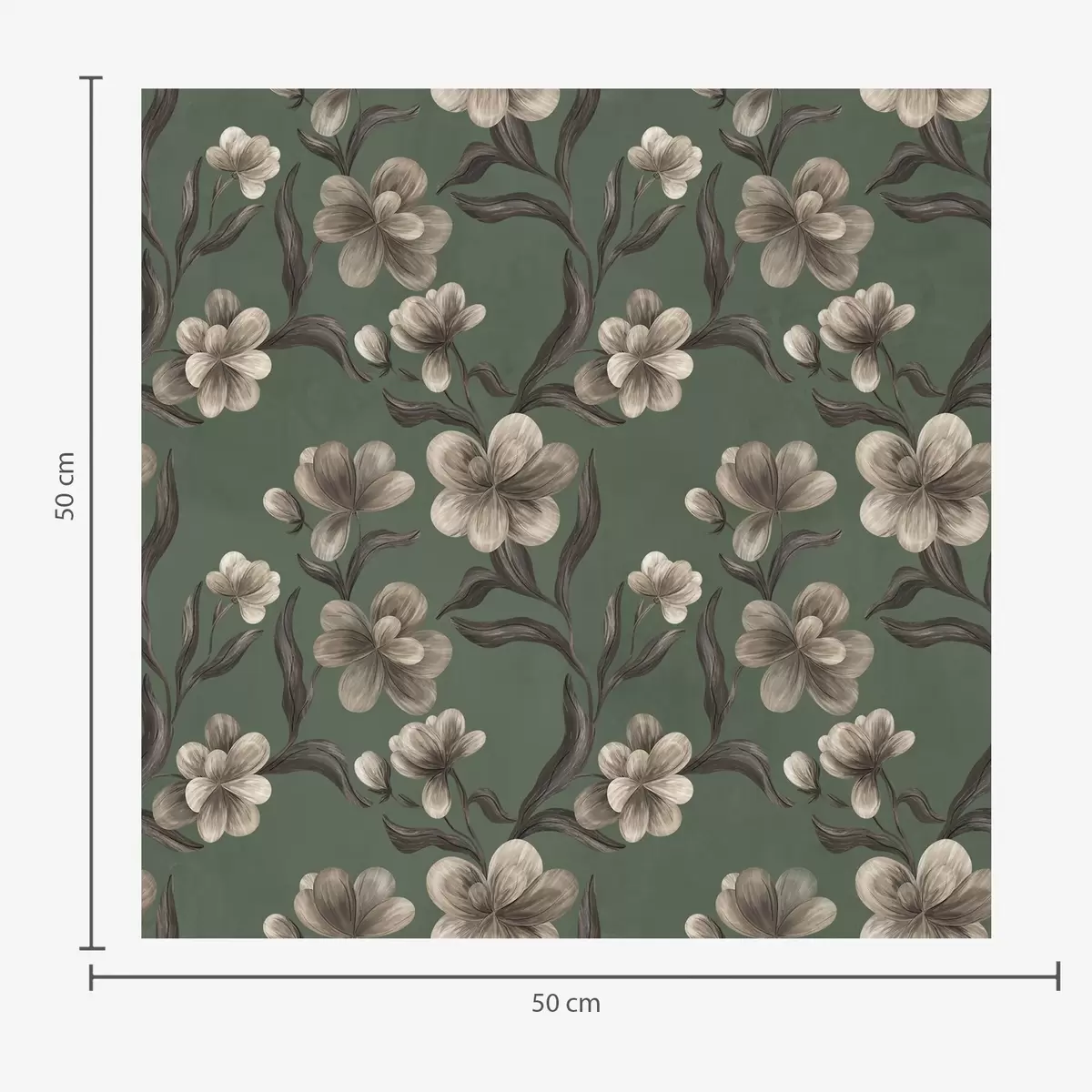 Papel de parede Flores bege sobre um fundo verde intenso Nr. a00626v3