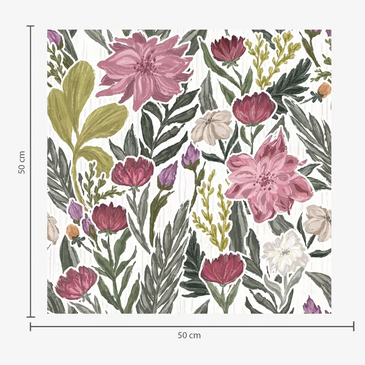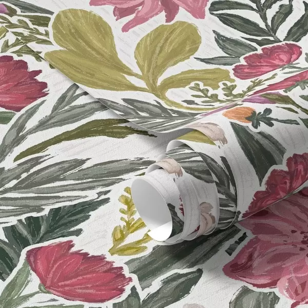 Papel de parede Flores exuberantes em tons de rosa e creme sobre fundo branco, textura impasto Nr. a00629v1