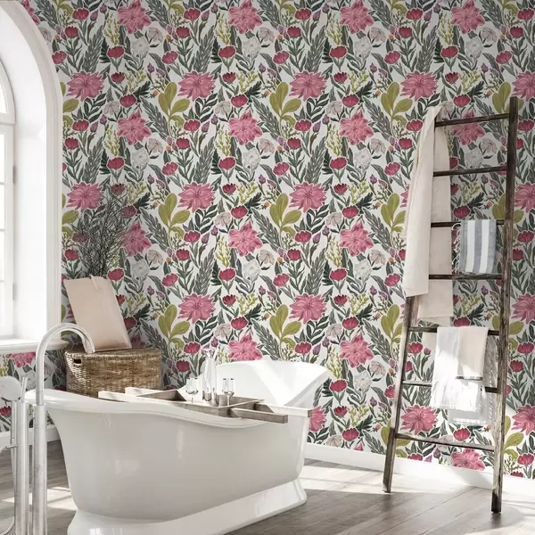 Papel de parede Flores exuberantes em tons de rosa e creme sobre fundo branco, textura impasto Nr. a00629v1