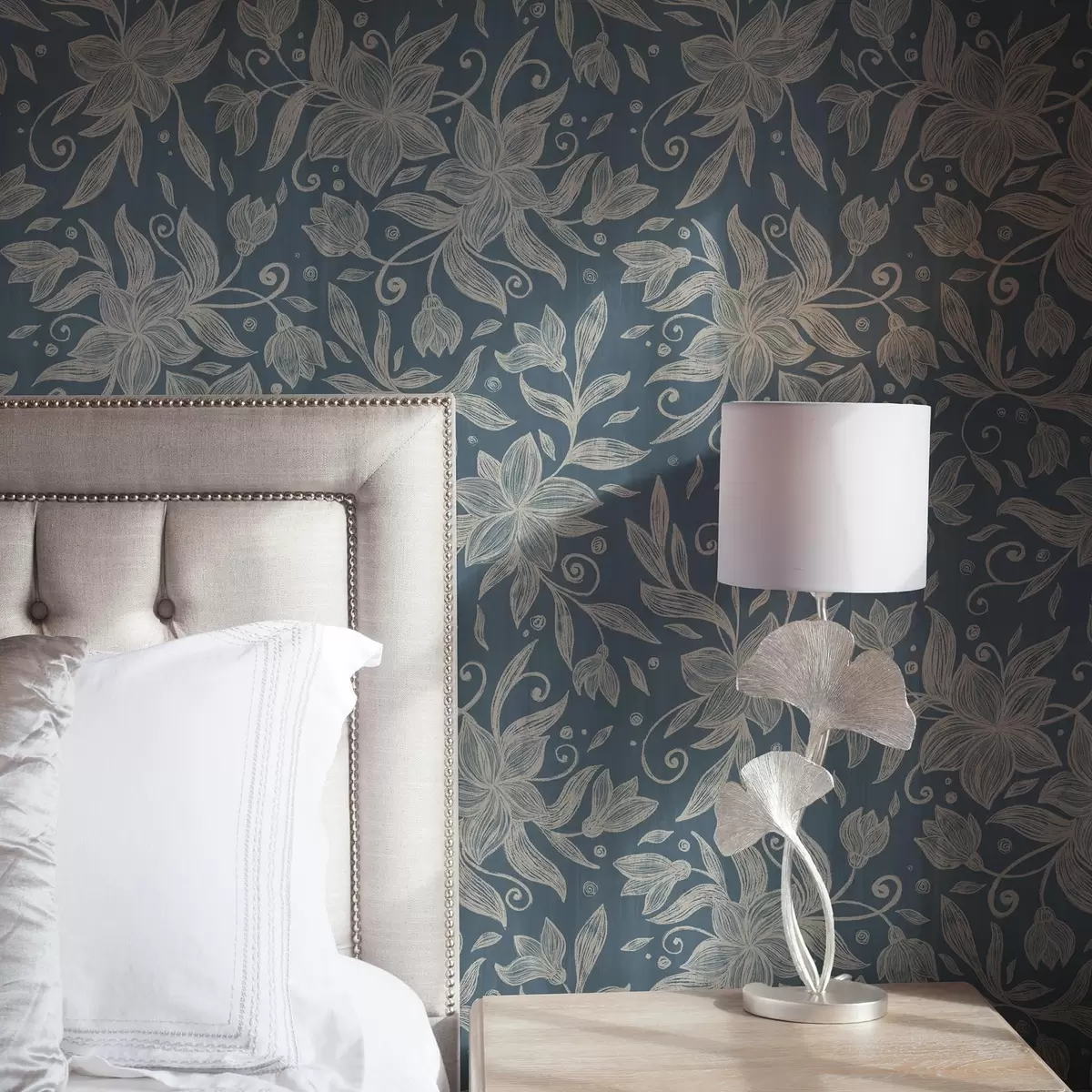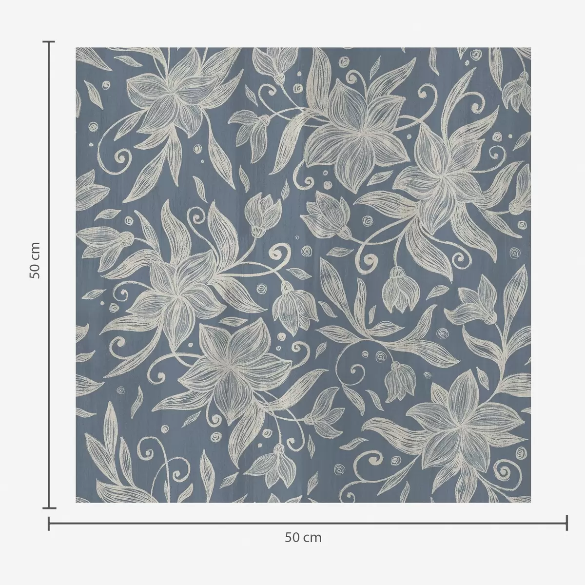 Papel de parede Flores lineares creme sobre fundo azul, delicados arabescos Nr. a00630