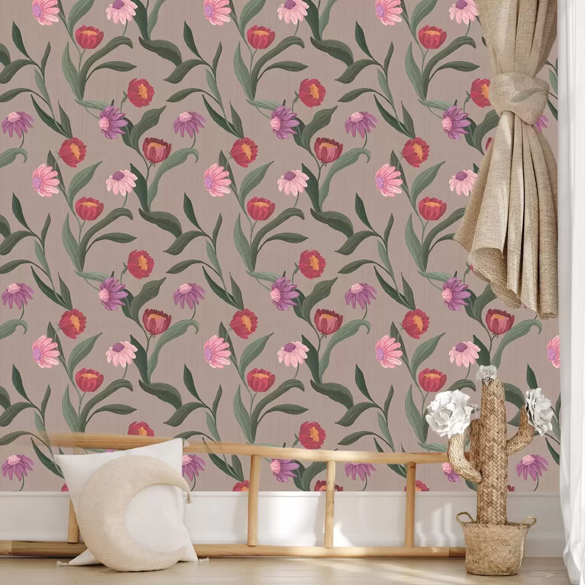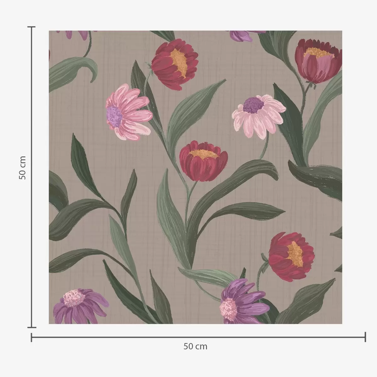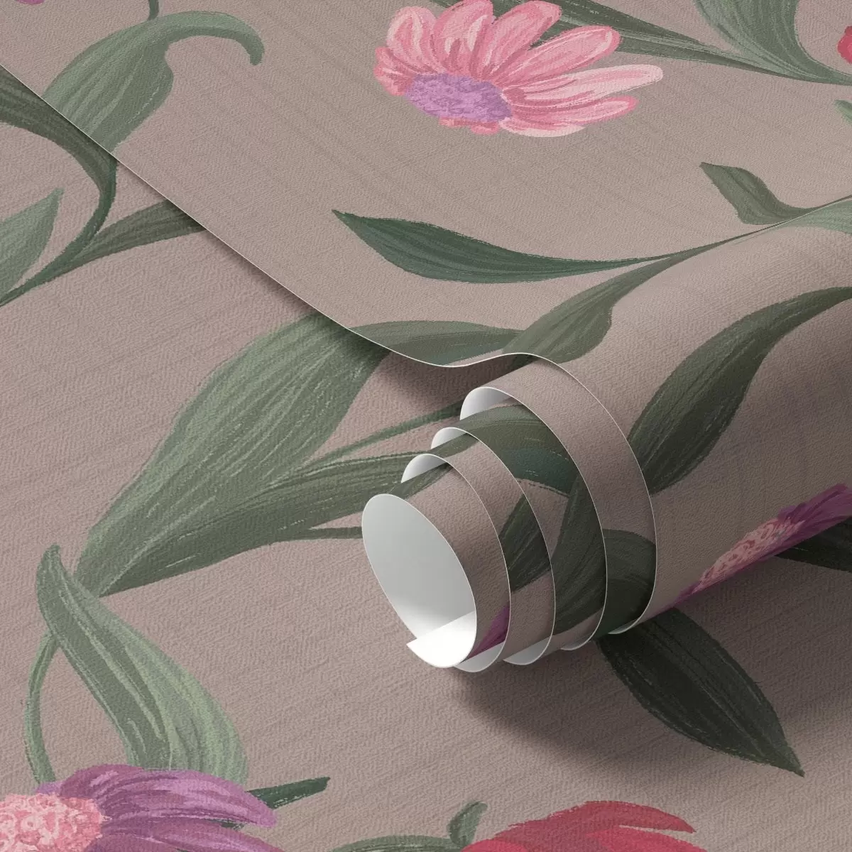 Papel de parede Flores rosa-avermelhadas sobre fundo cinza-escuro, hastes longas Nr. a00631v2