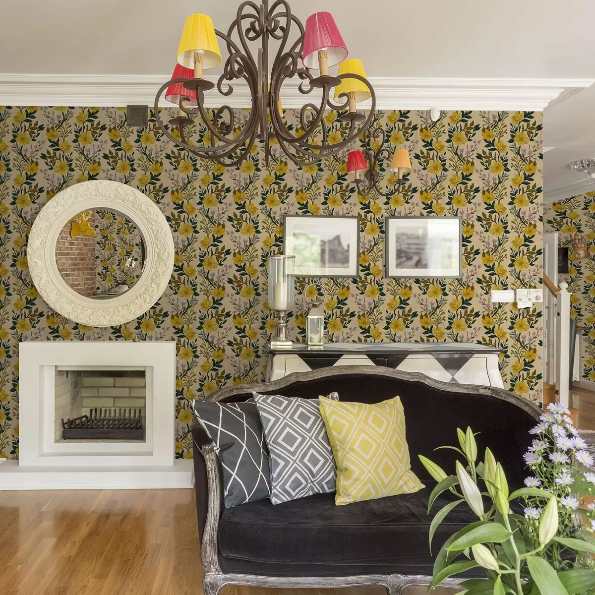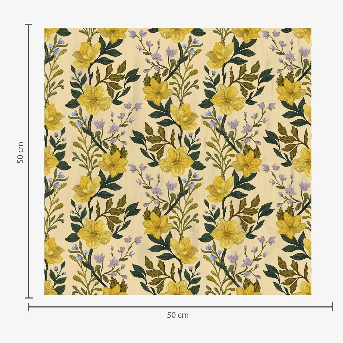Papel de parede Flores amarelas em guirlandas verticais sobre fundo creme Nr. a00632