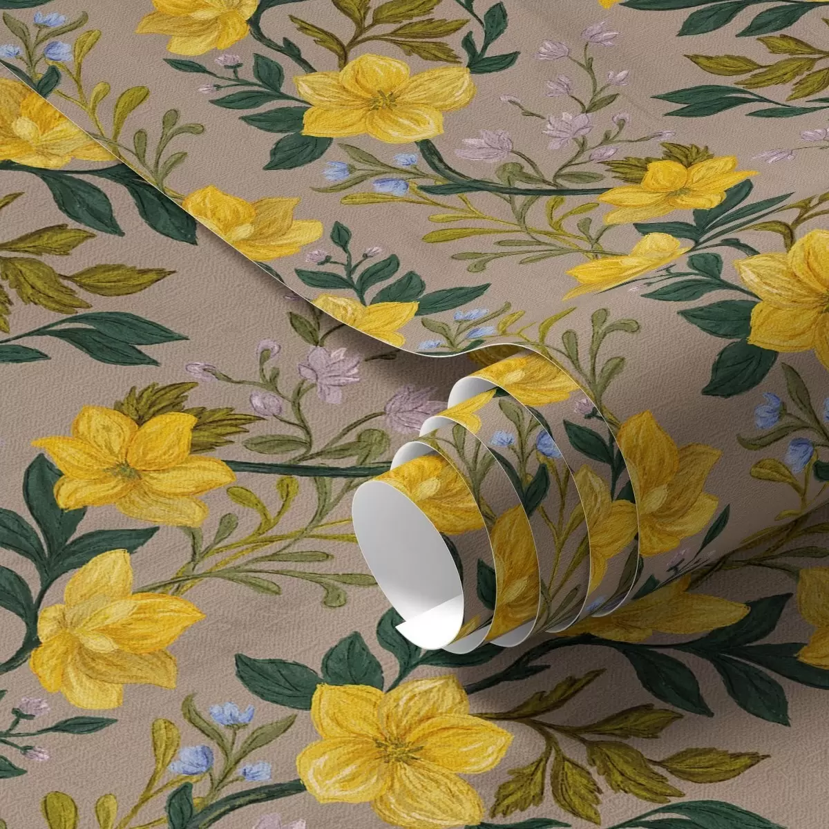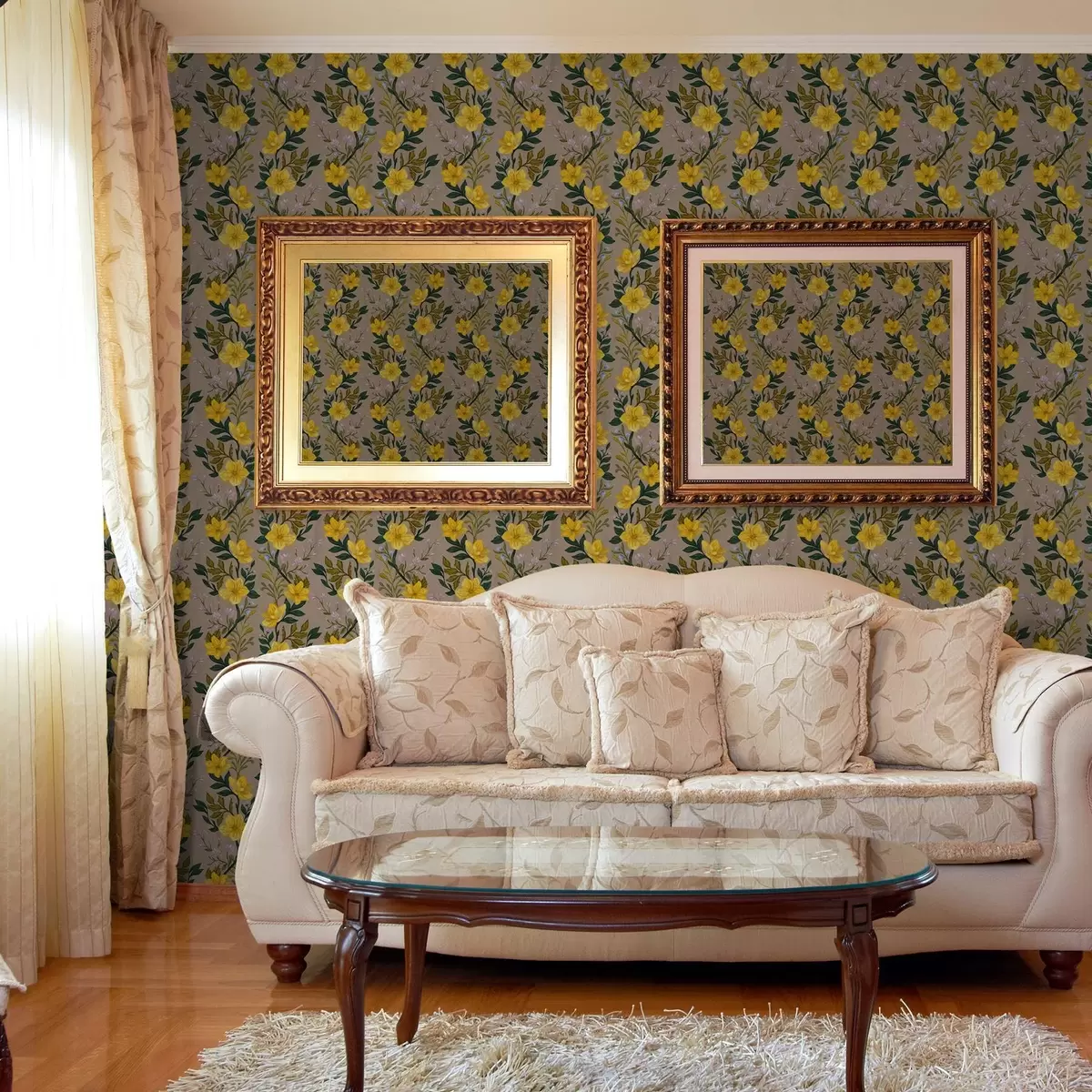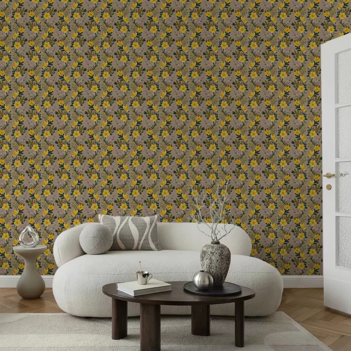 Papel de parede Flores amarelas em guirlandas verticais sobre fundo cinza-claro Nr. a00632v1