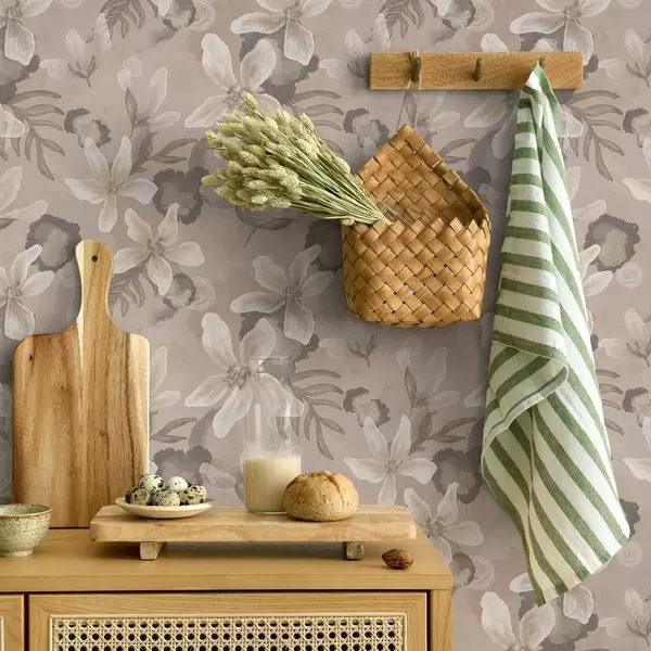Papel de parede Grandes flores bege com manchas abstratas em aquarela Nr. a00635