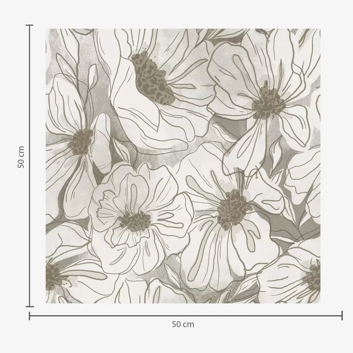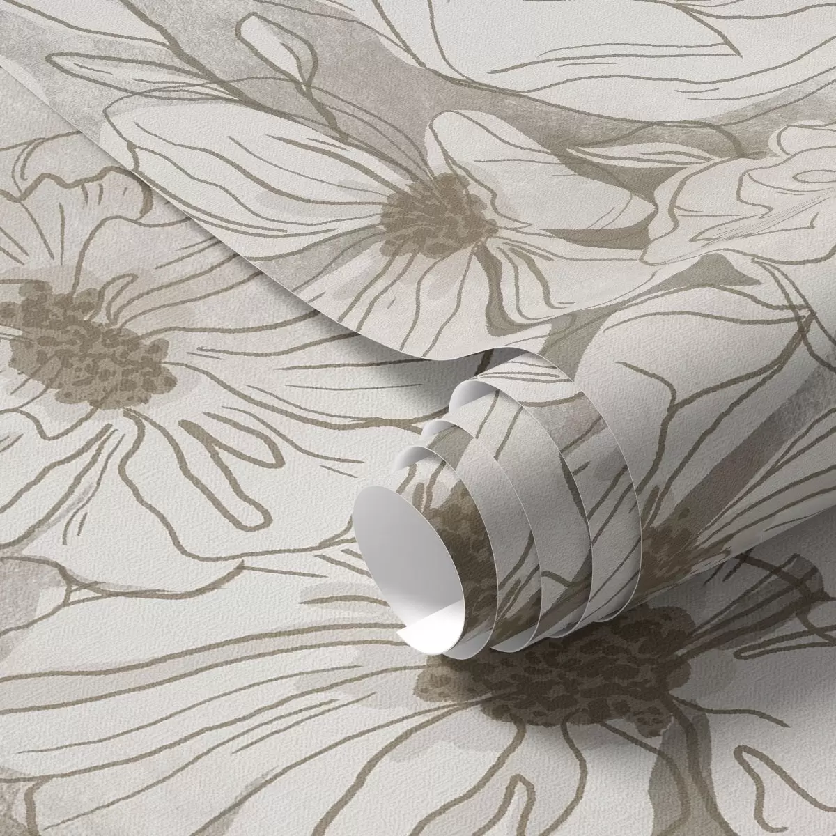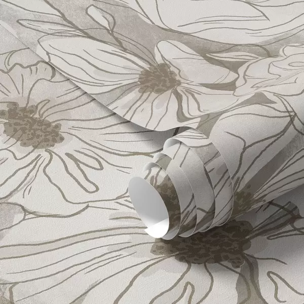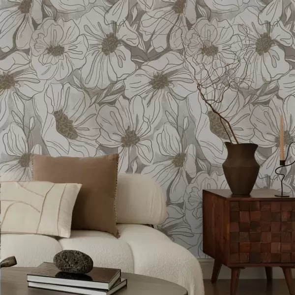 Papel de parede Flores lineares numa paleta monocromática bege-cinza Nr. a00636