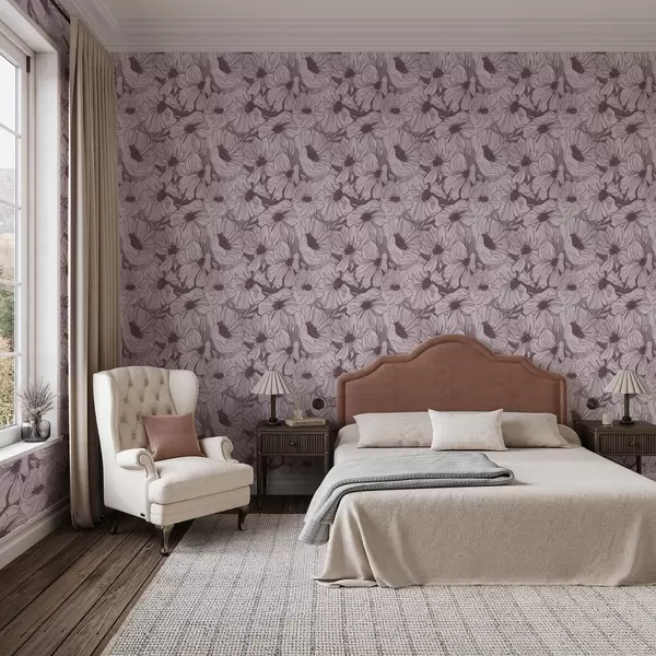 Papel de parede Flores lineares numa paleta de tons lilás-rosa frescos Nr. a00636v1