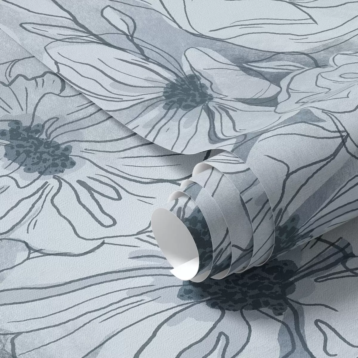 Papel de parede Flores lineares numa paleta de tons frios cinza-azulados Nr. a00636v2