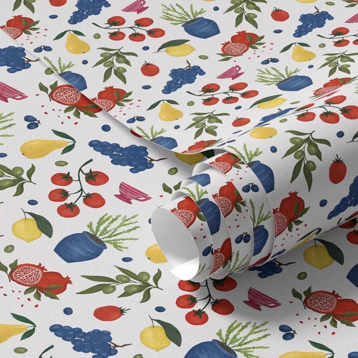 Papel de parede Padrão botânico com frutas brilhantes sobre fundo branco Nr. a00637v1