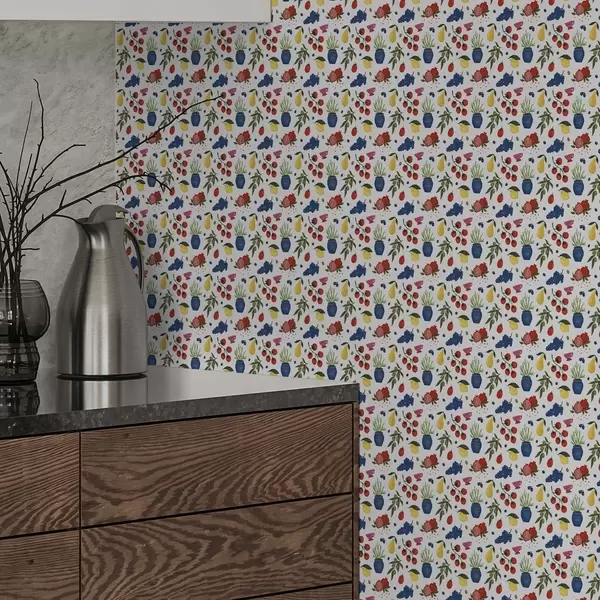 Papel de parede Padrão botânico com frutas brilhantes sobre fundo branco Nr. a00637v1