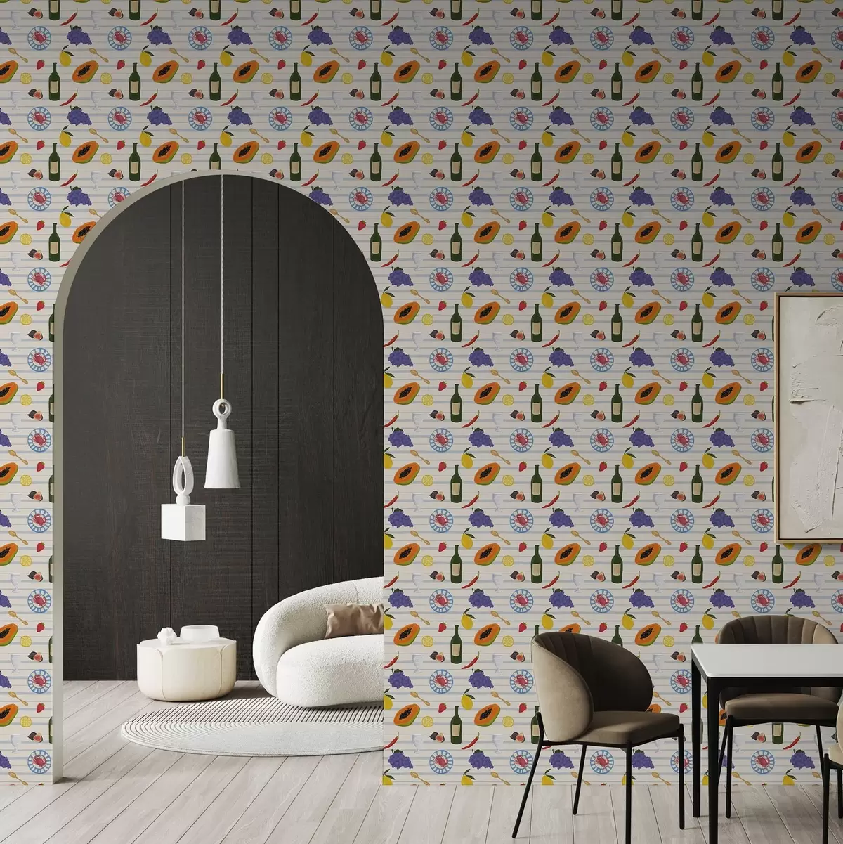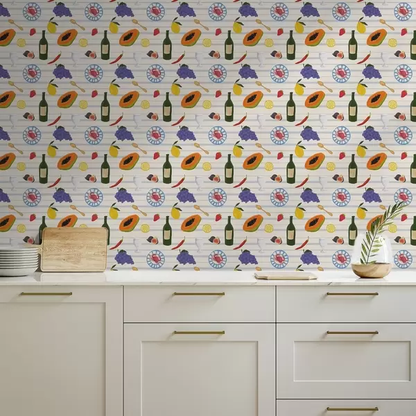 Papel de parede Impressão de cozinha com frutas, copos e pratos Nr. a00638