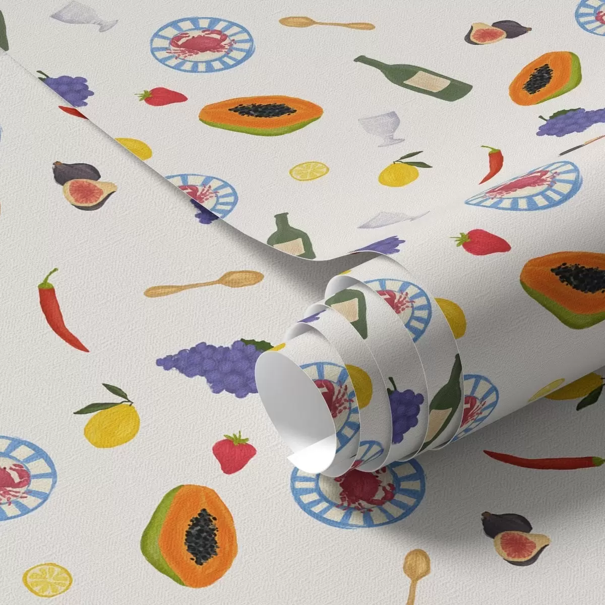 Papel de parede Frutas, vinho e especiarias dispostos sobre um fundo claro Nr. a00639