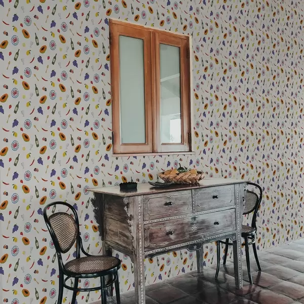 Papel de parede Frutas, vinho e especiarias dispostos sobre um fundo claro Nr. a00639